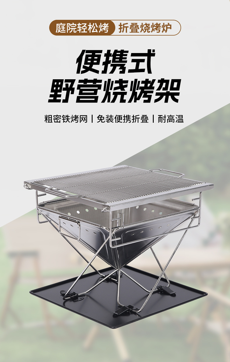 304 스테인리스 스틸 좁은 테두리 접이식 바베큐 그릴 야외 캠핑 장작 난로 캠핑 휴대용 바베큐 그릴 피크닉 난로스토어 가기