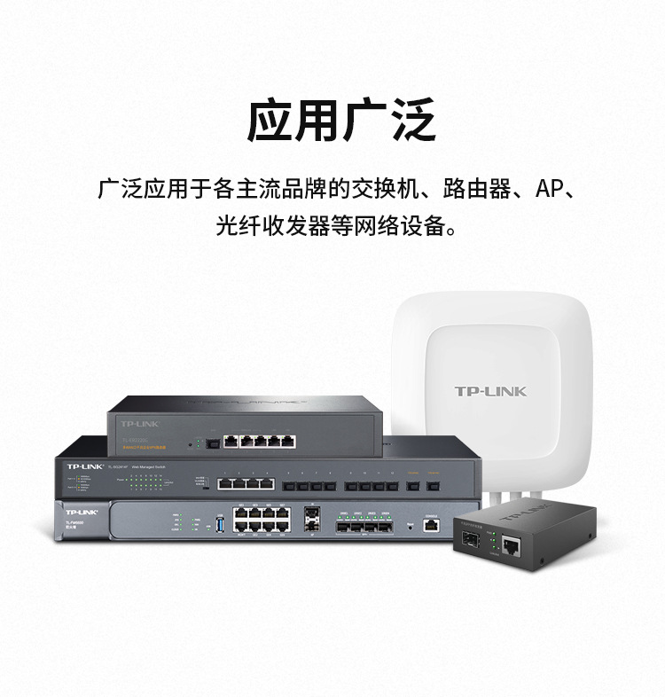 TL-SM312LS-20KM使用标准的千兆SFP接口,兼容市面上各品牌网络设备。