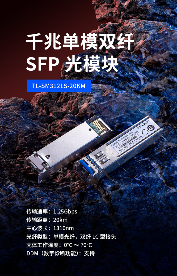 TL-SM312LS-20KM是TP-LINK新推出的千兆单模双纤SFP光模块。光器件,性能,为国内外日益增长的光纤传输应用提供高性能、低成本的解决方案。