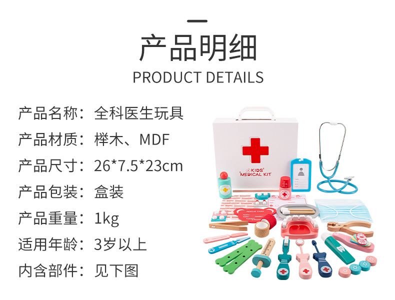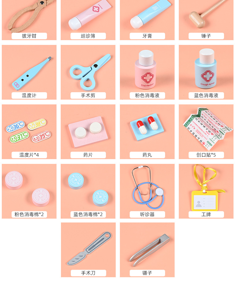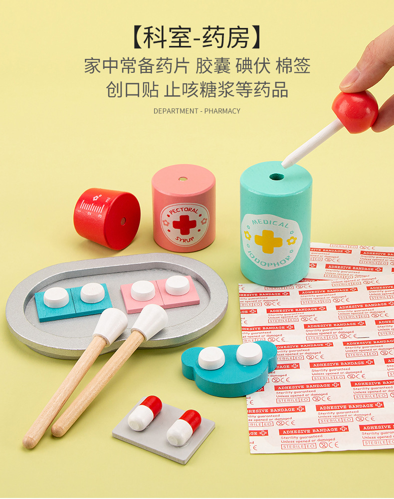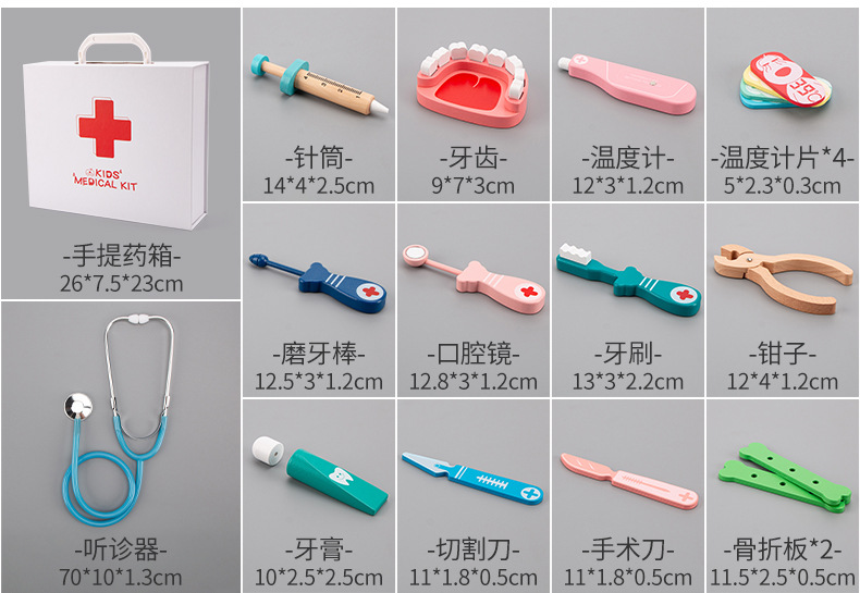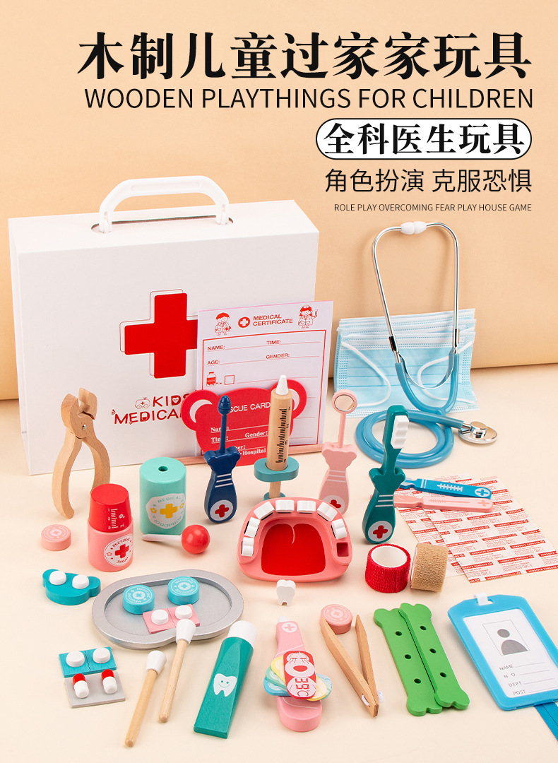 나무 어린이 시뮬레이션 나무 상자 약 상자 시뮬레이션 놀이 집 만능 의사 세트 주사기 장난감 장난감스토어 가기