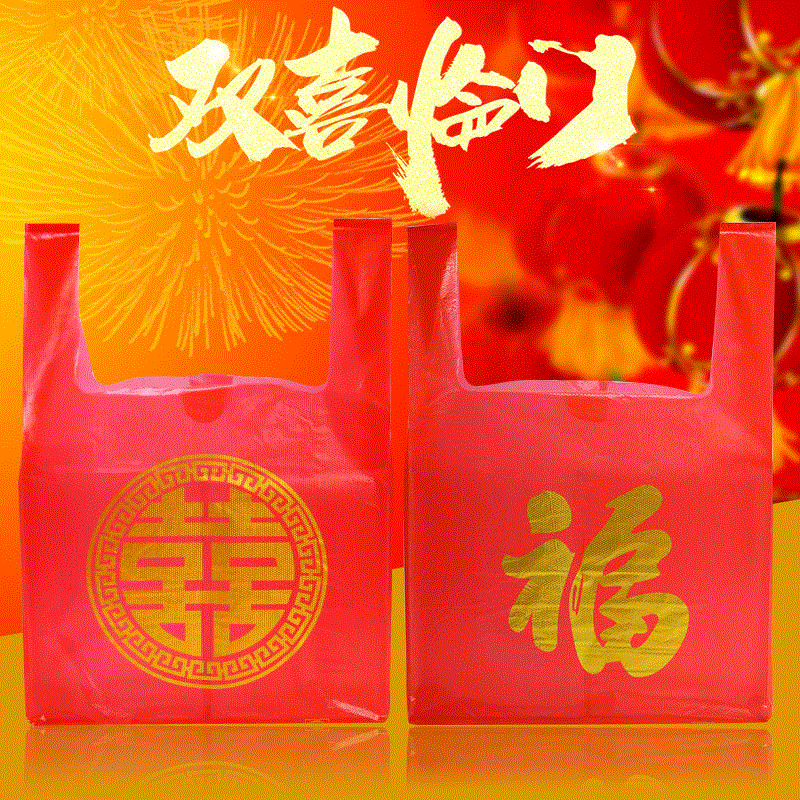 푸 단어 비닐 봉투 빨간 축제 비닐 봉투 결혼식 보름달 집들이 행복한 선물 가방 행복한 단어 행운의 단어 비닐 봉투스토어 가기