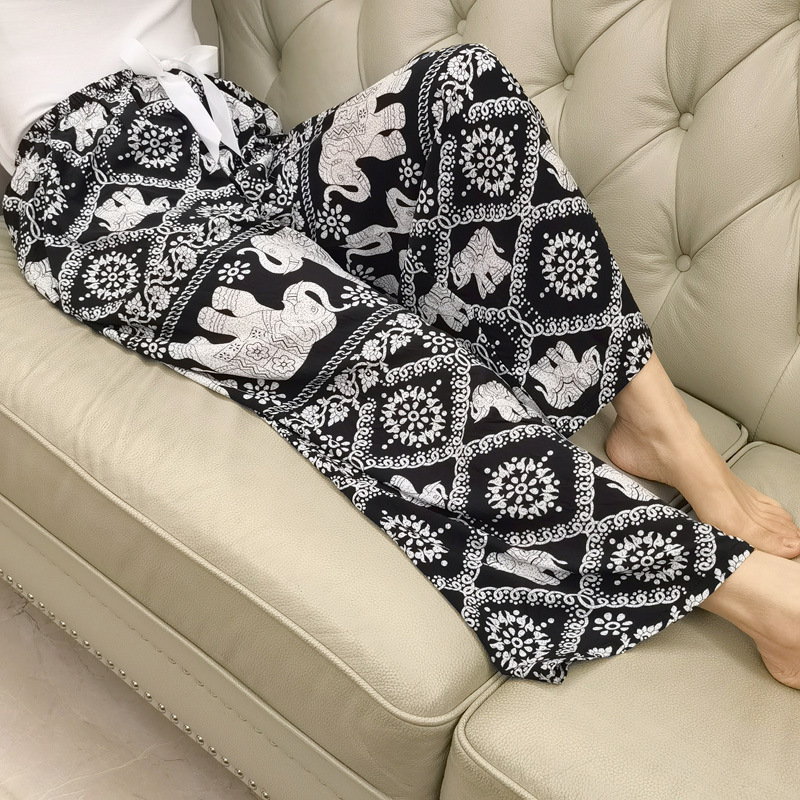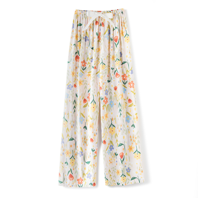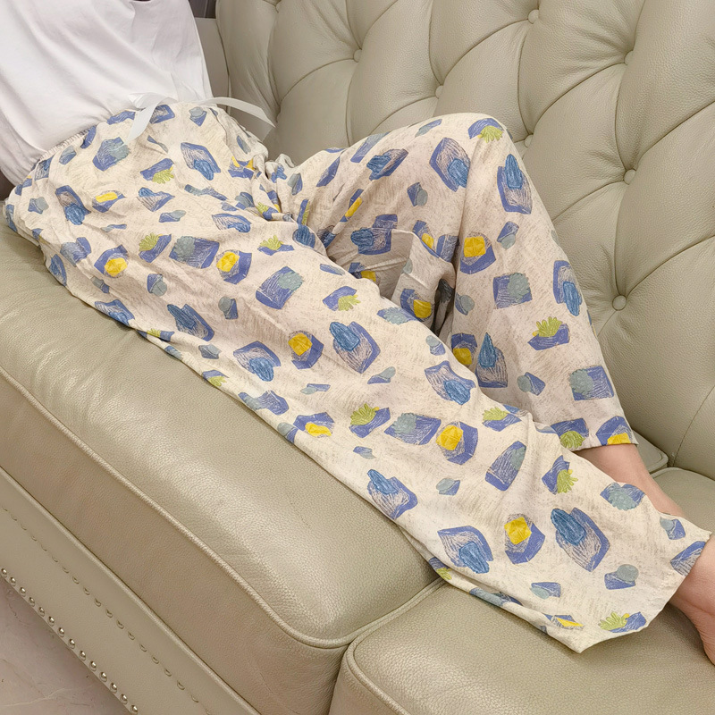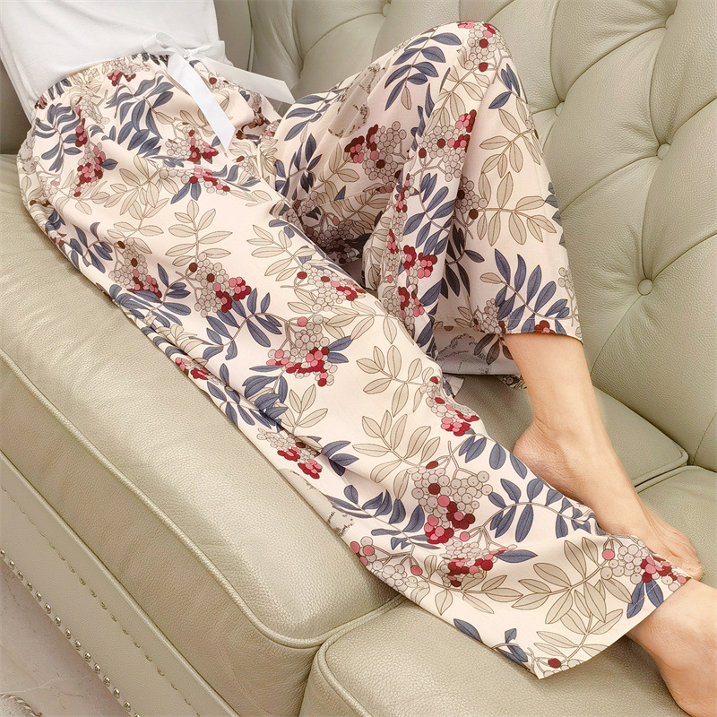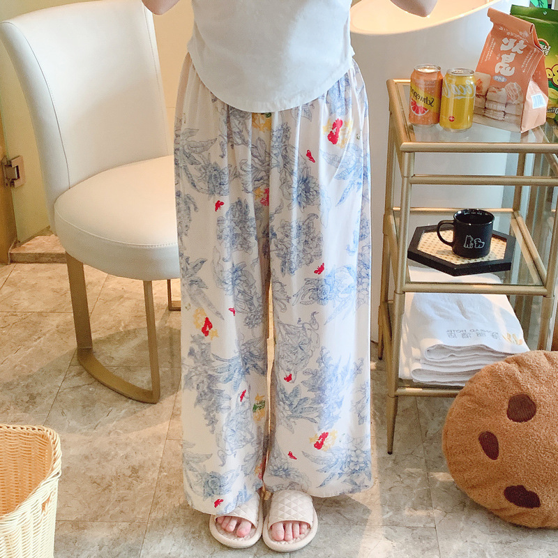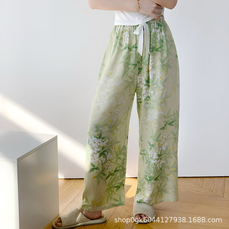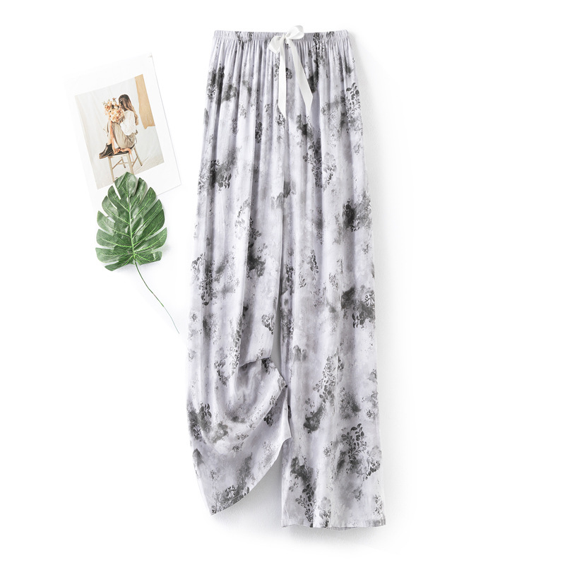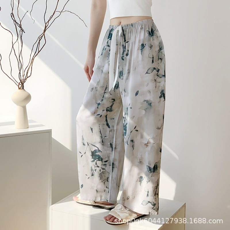 면 실크 파자마 바지 여성용 얇은 면 실크 와이드 레그 팬츠 인터넷 연예인 폭발 홈 웨어러블 레이온 팬츠 초대형 사이즈스토어 가기
