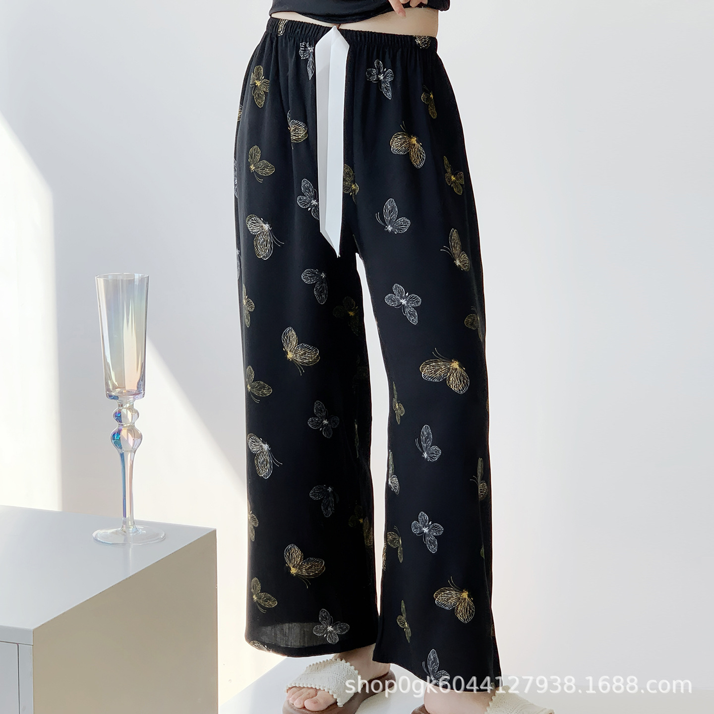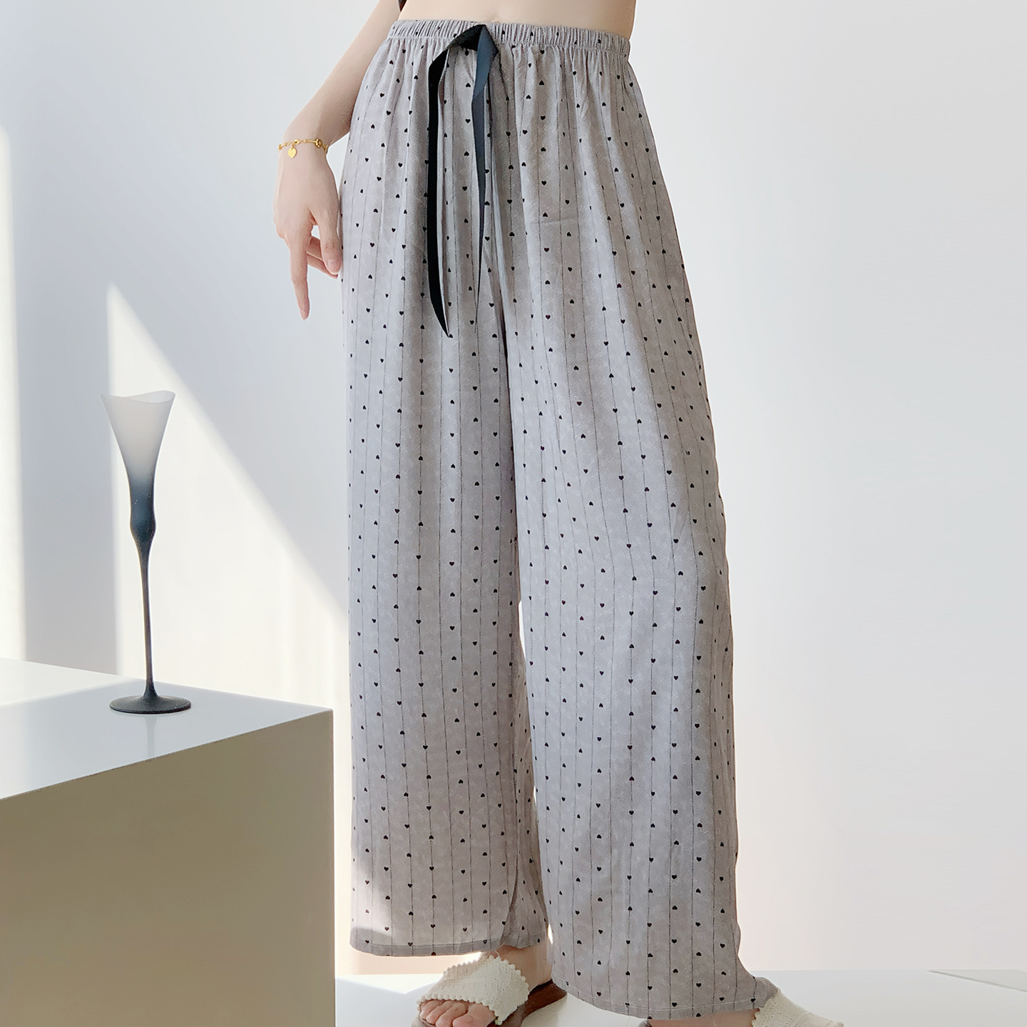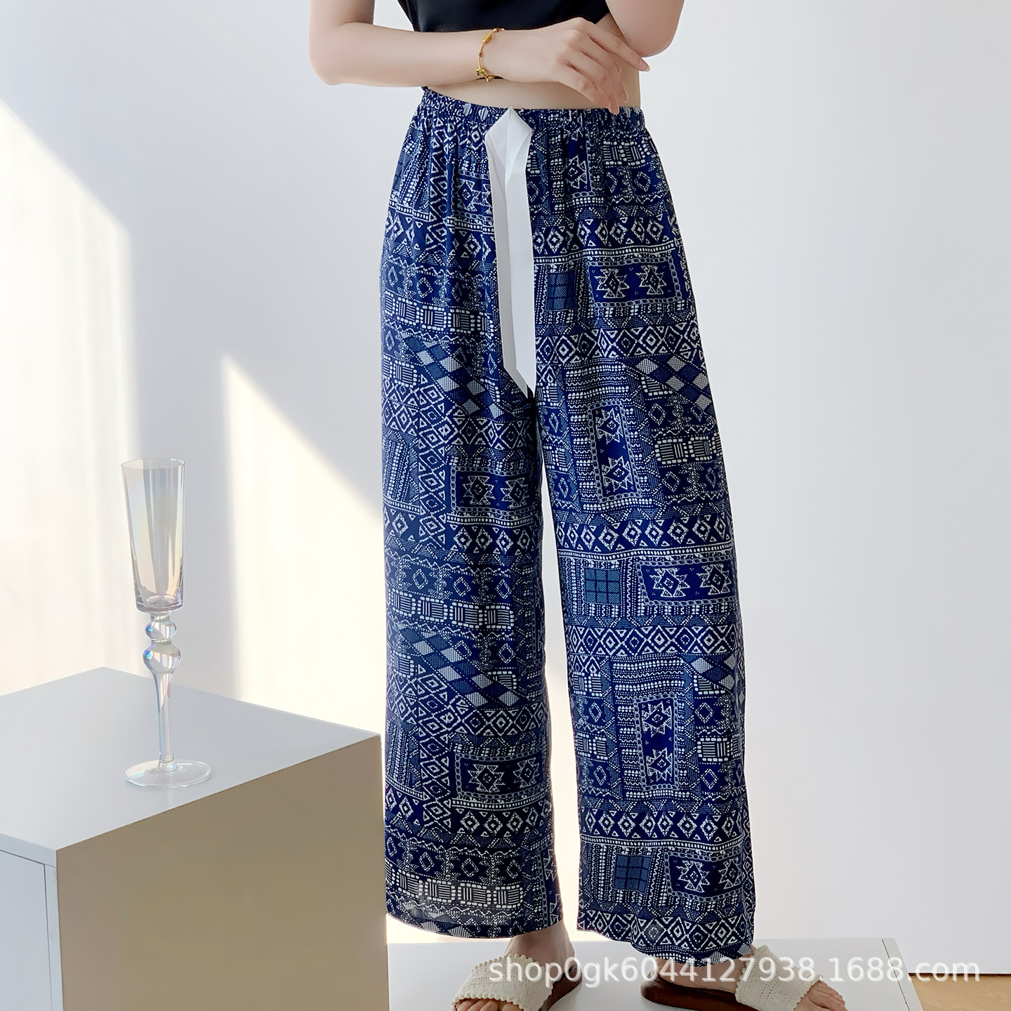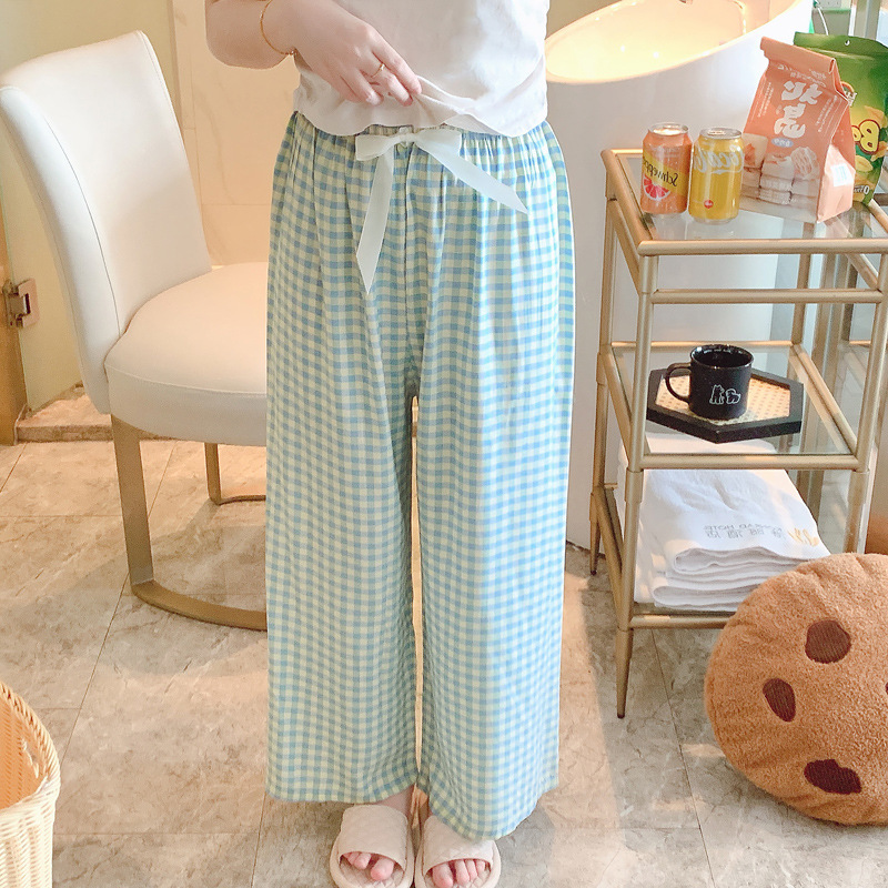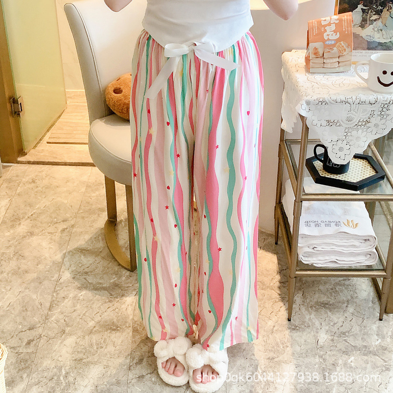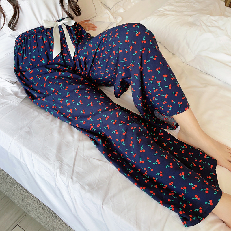면 실크 파자마 바지 여성용 얇은 면 실크 와이드 레그 팬츠 인터넷 연예인 폭발 홈 웨어러블 레이온 팬츠 초대형 사이즈스토어 가기