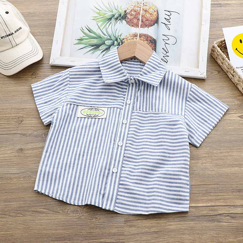 남아 반팔 셔츠 여름 2022 새로운 한국 스타일 어린이 스트라이프 반팔 탑 아기 옷깃 셔츠 느슨한 얇은스토어 가기