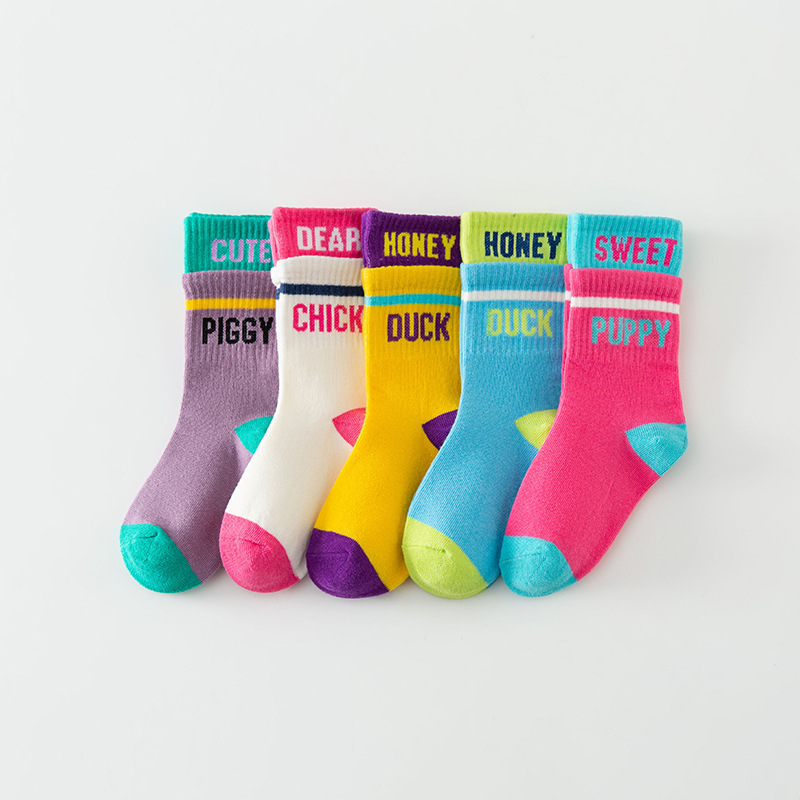 봄 가을과 겨울 새로운 어린이 더블 Rakou 양말 중간 튜브 영어 문자 소년과 소녀를위한 유행 양말 부모-자식 스타킹