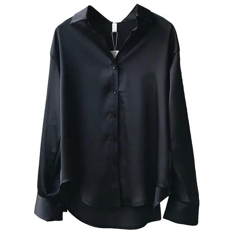 화이트 셔츠 여성의 가을과 겨울 디자인 센스 틈새 새틴 셔츠 모든 경기 레트로 홍콩 스타일 우아한 긴팔 드레이프 탑