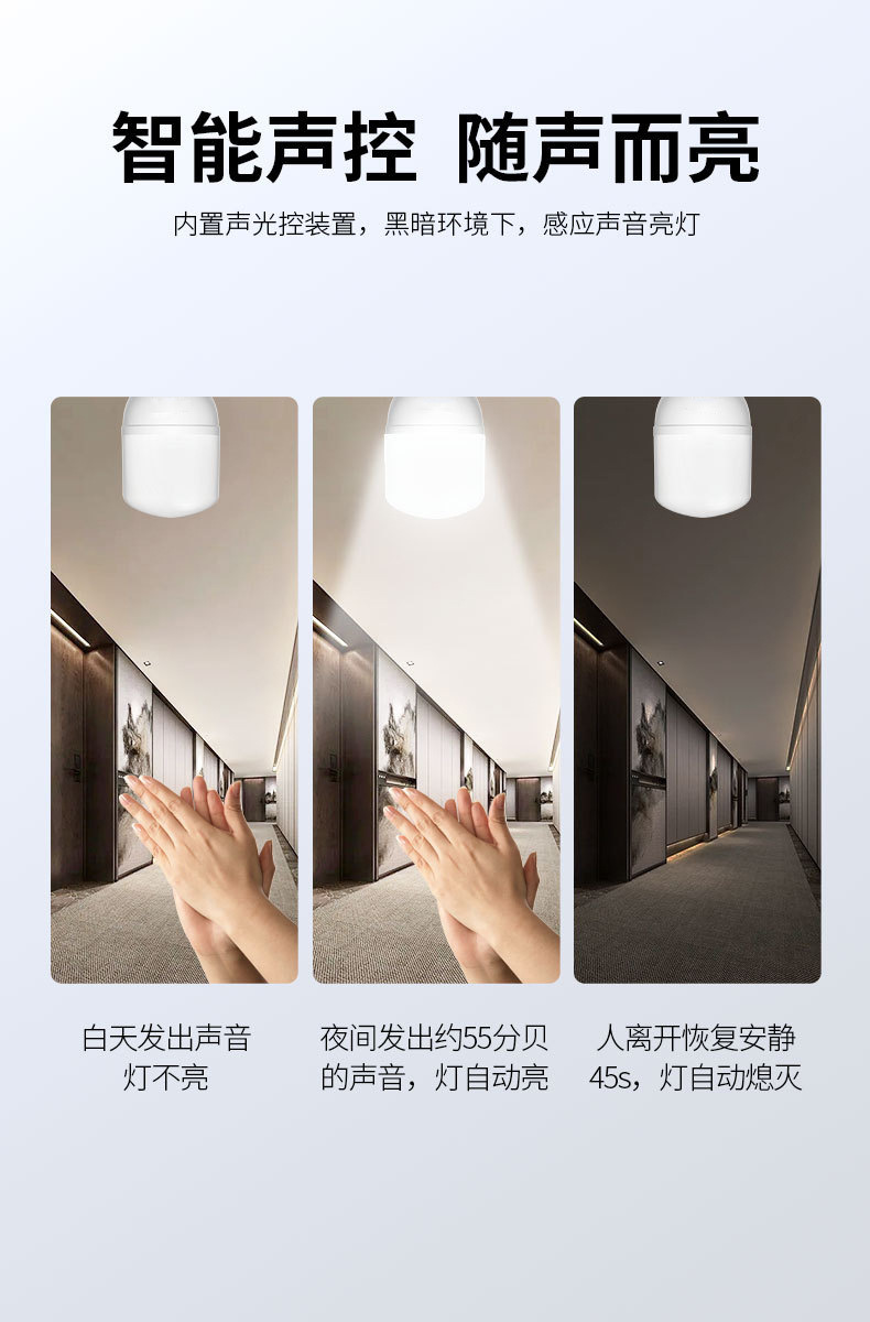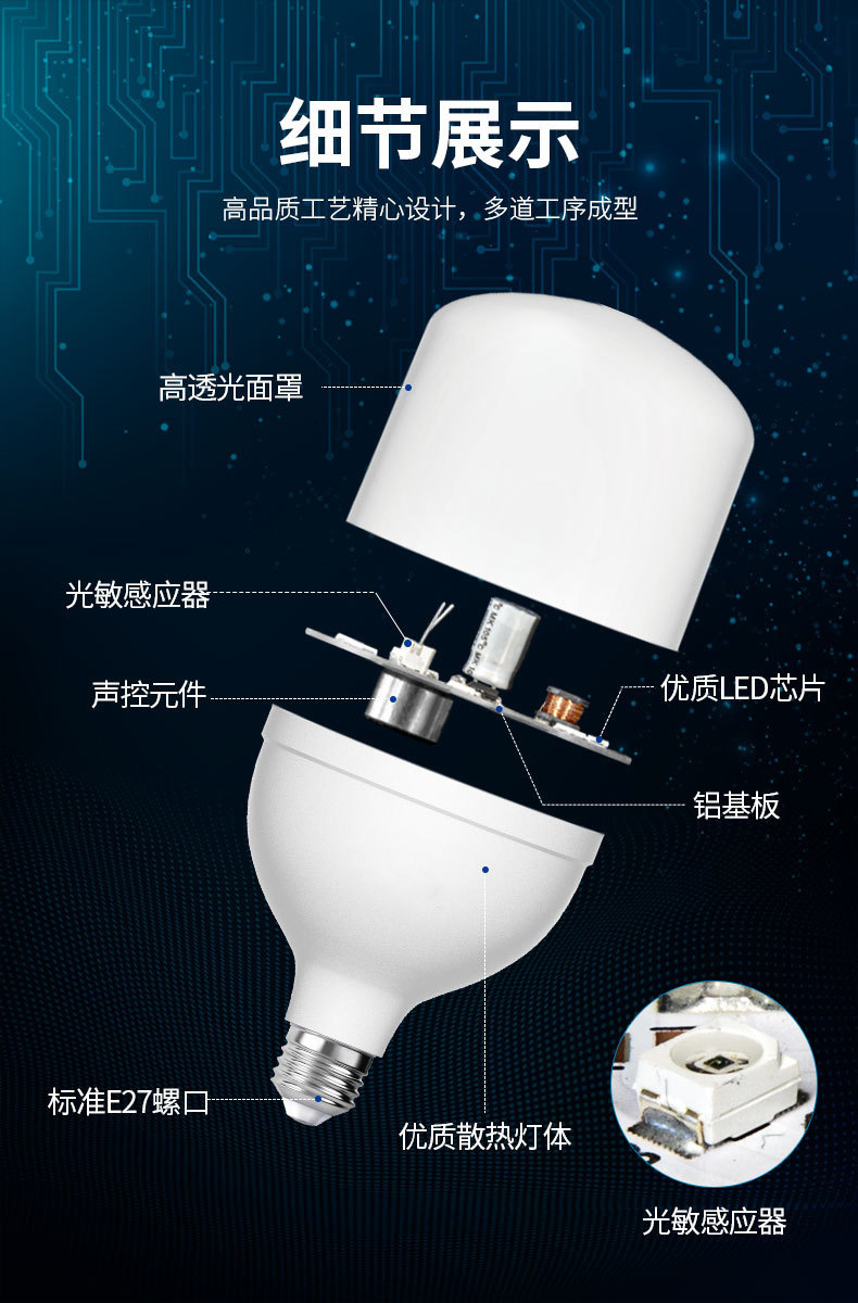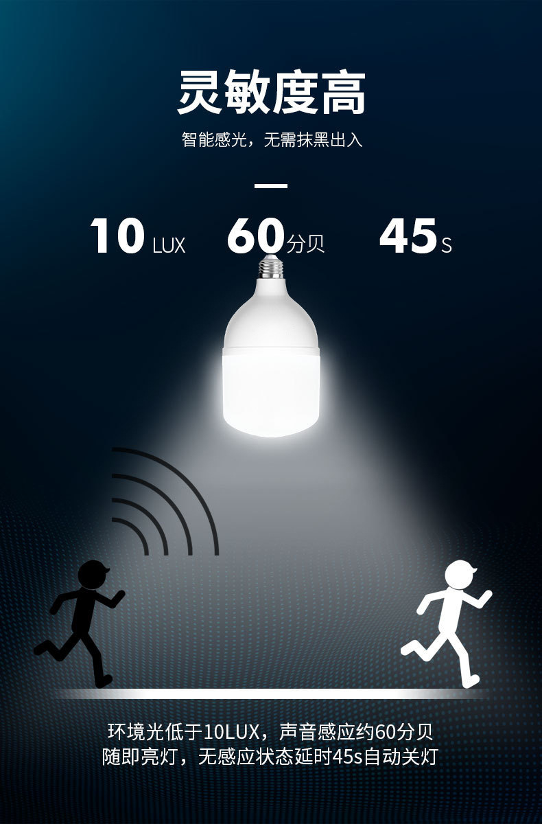 Kuppet Foshan 10W 사운드 및 조명 제어 t 전구 led 슈퍼 밝은 차고 계단 재산 복도 E27 스마트 센서 라이트