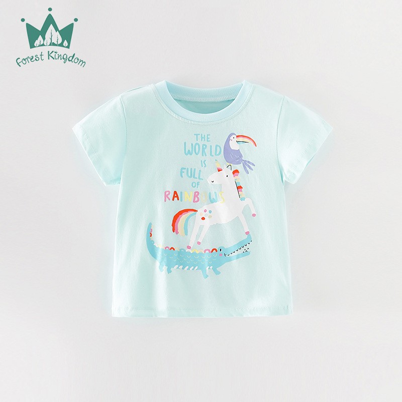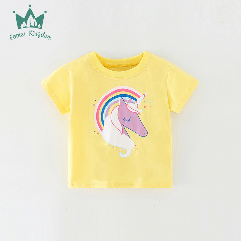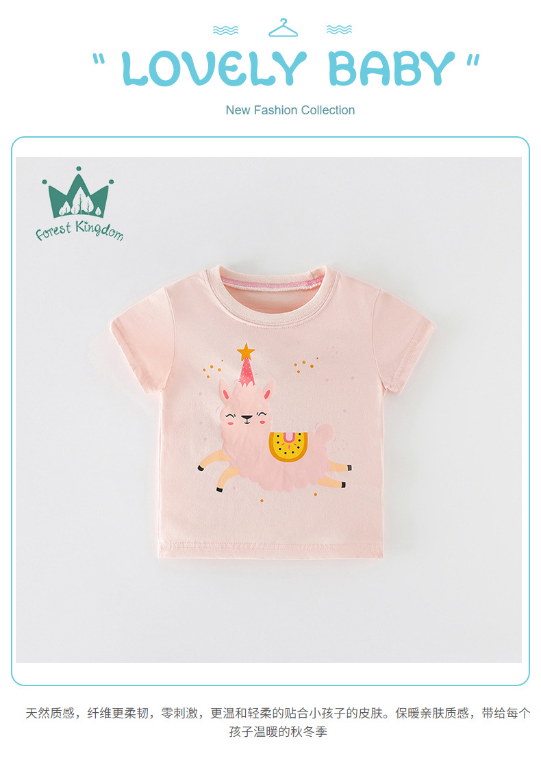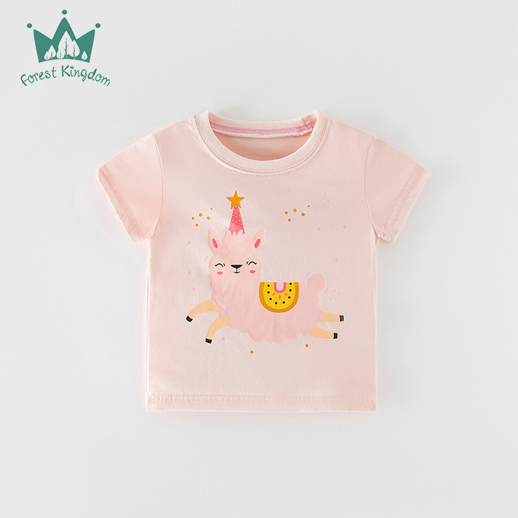 국경 유럽과 미국 스타일의 순면 티셔츠 반팔 소녀 여름 새 여자 탑 라운드 넥 아동 의류 중소 아동 의류스토어 가기