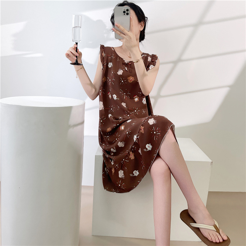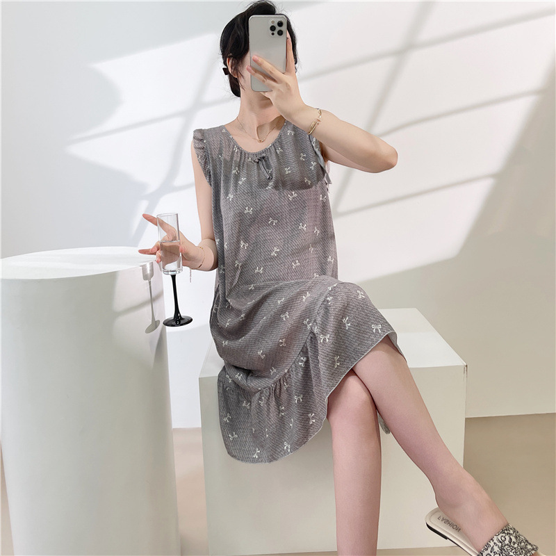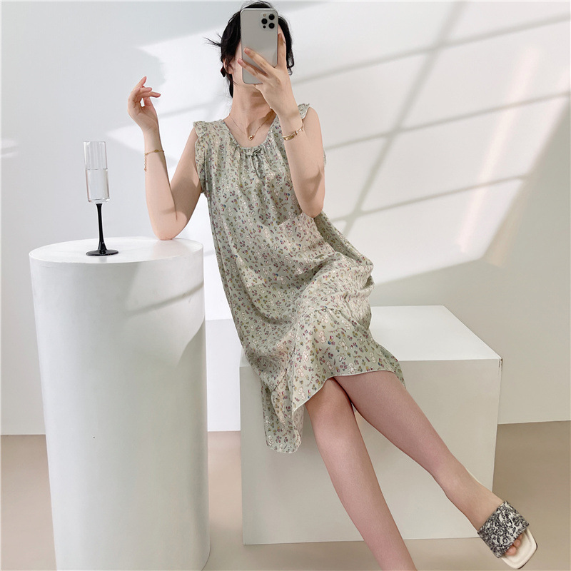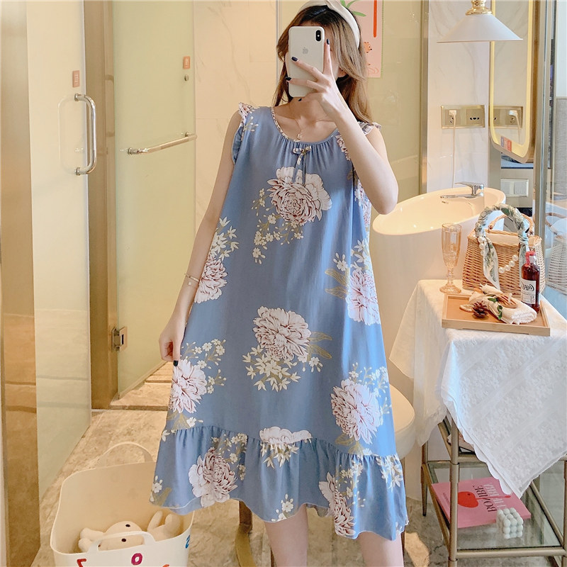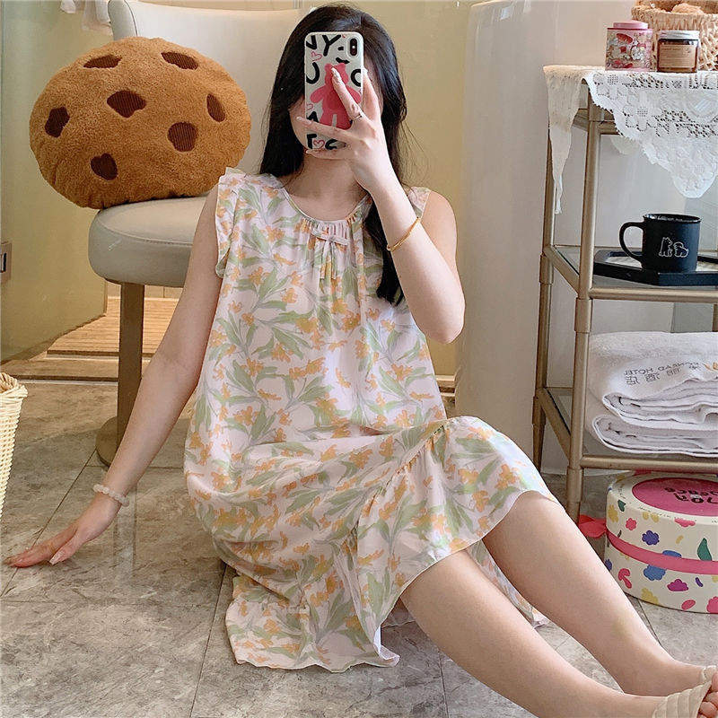 2026 한국 스타일 공주풍 드레스, 귀엽고 루즈한 인조면 홈웨어, 면 실크 잠옷, 여성용 여름 얇은 스타일스토어 가기