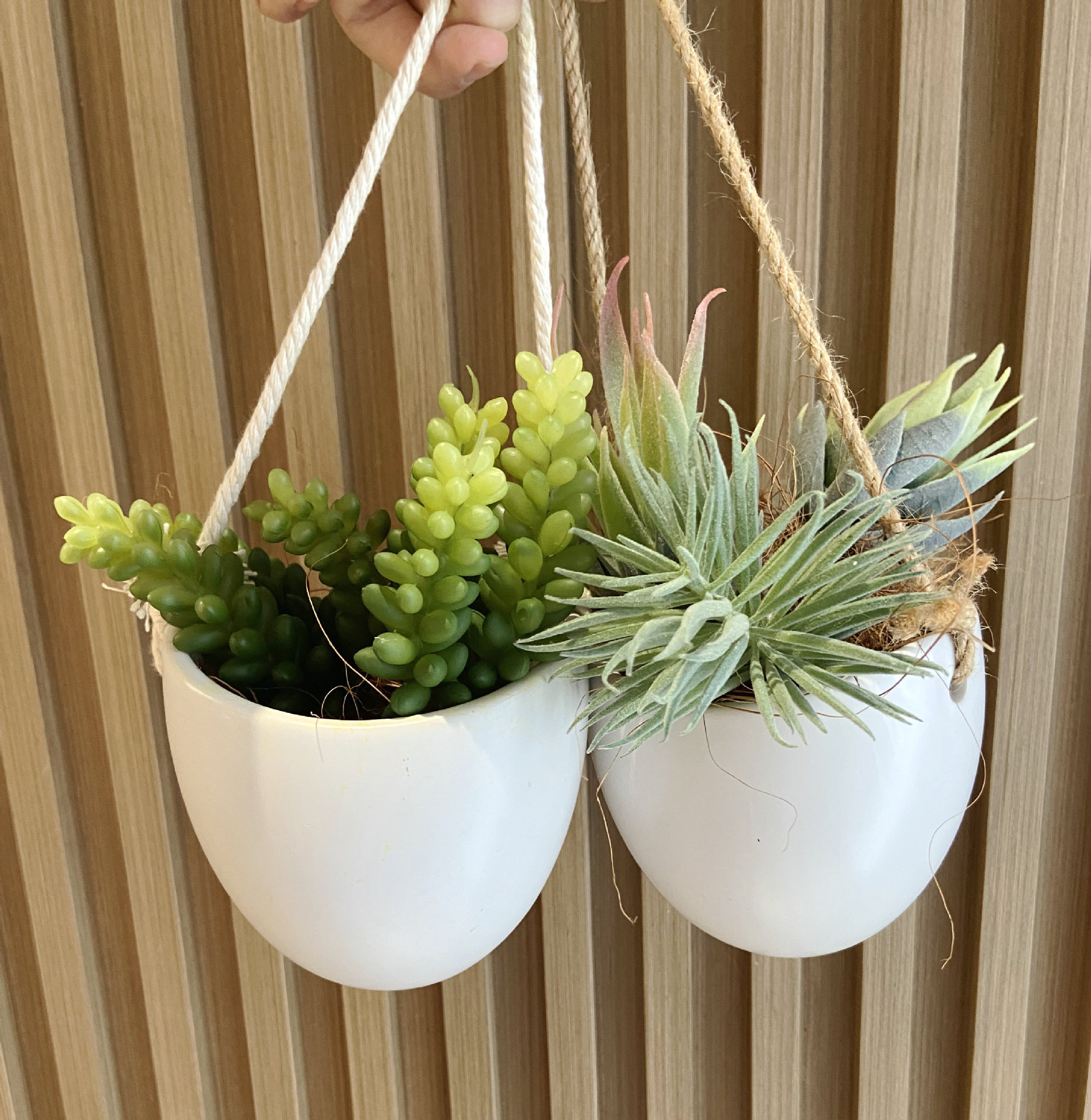 跨境园艺壁挂式组合式白色棉麻绳波西米亚风格北欧批发多肉小吊盆