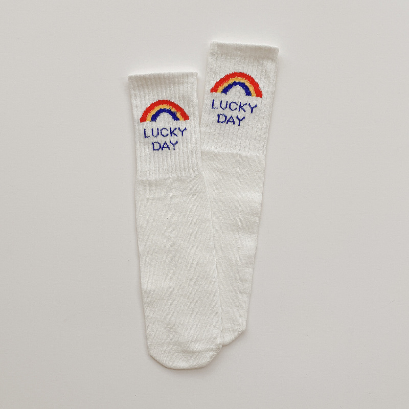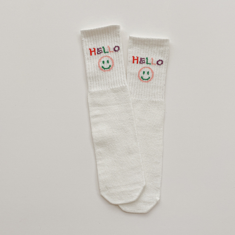 2023 새로운 봄과 가을 어린이 양말 봄과 가을 한국 영어 웃는 유행 양말 소년과 소녀 아기 중간 스타킹