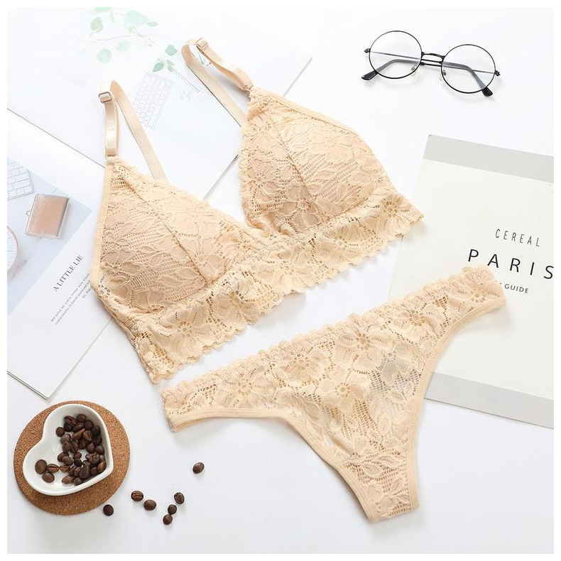 새로운 플러스 사이즈 유럽과 미국의 섹시한 고급 레이스 속옷 세트 울트라 얇은 수집 브래지어 통기성 원활한 브래지어 7365