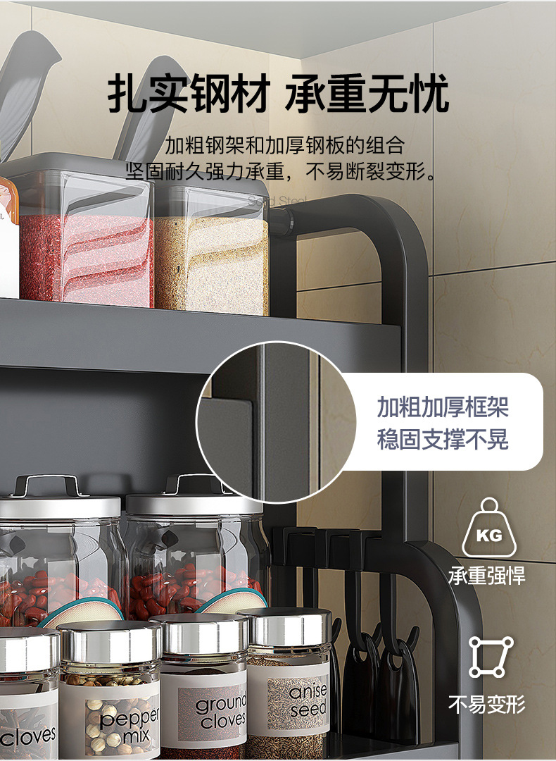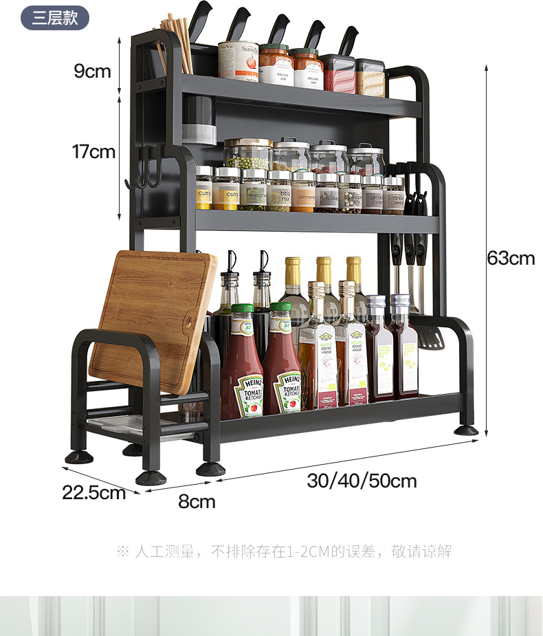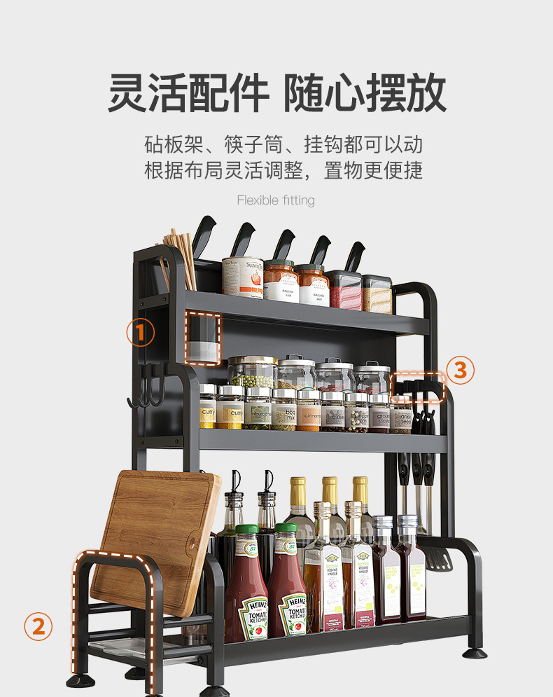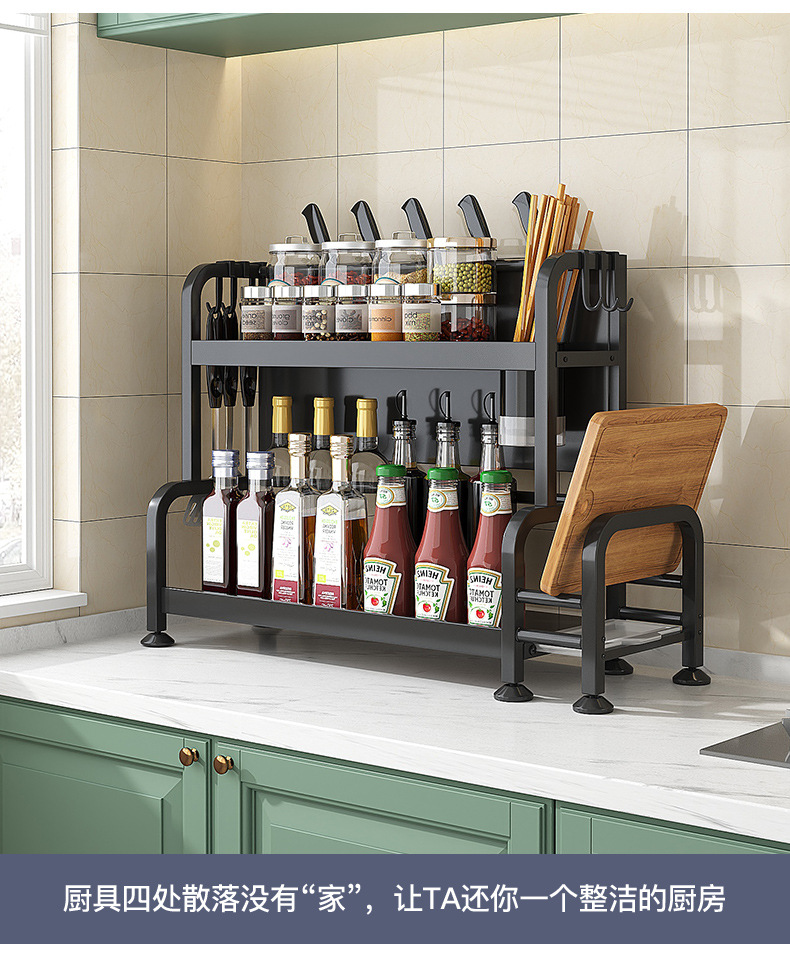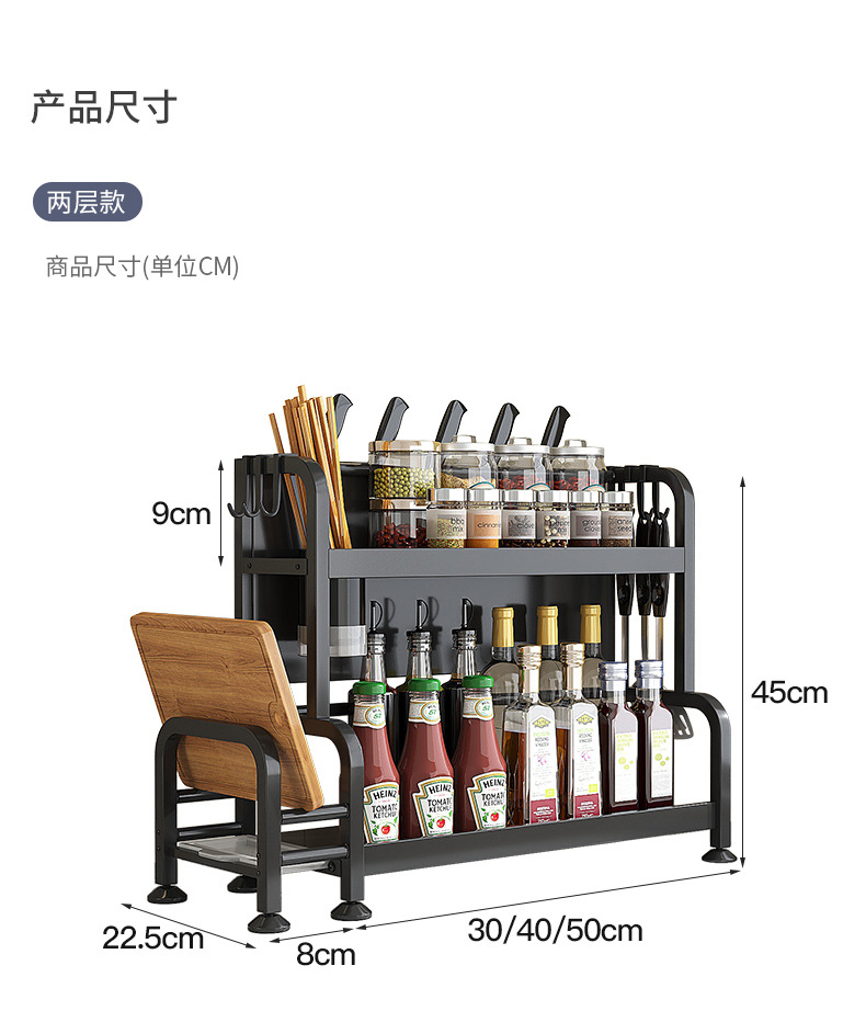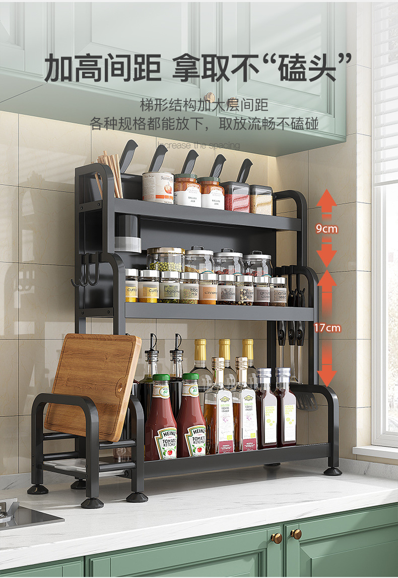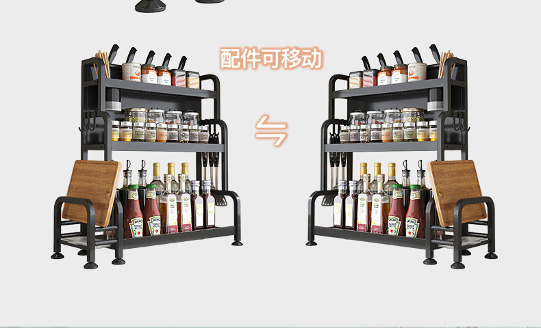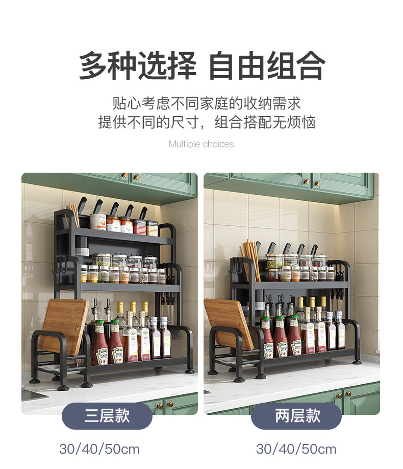 가정용 주방 수납 선반, 다층 스테인리스 조미료 선반, 칼꽂이, 다기능 무타공 수납 선반 세트스토어 가기