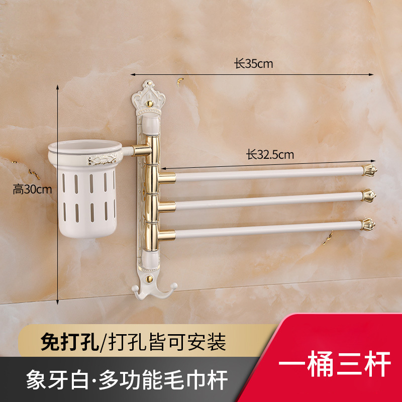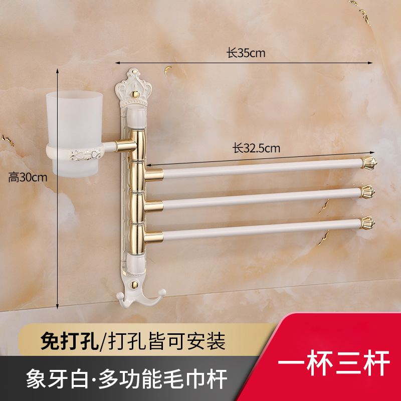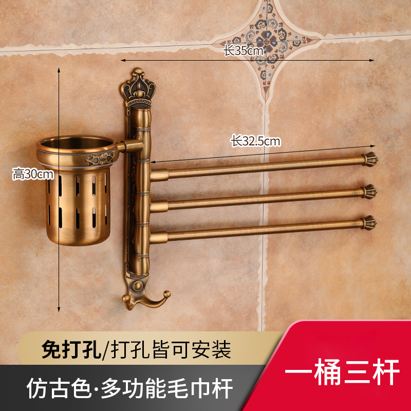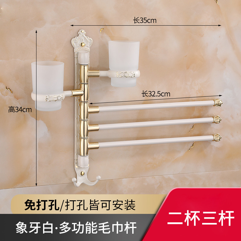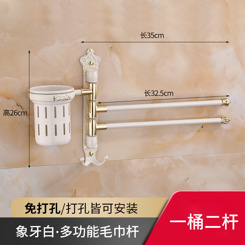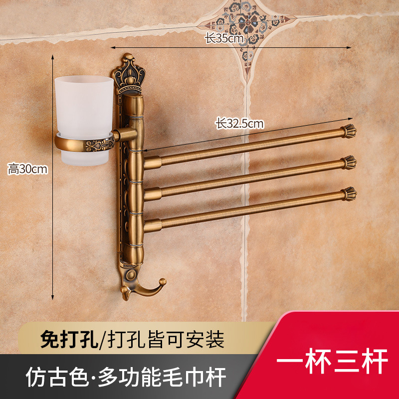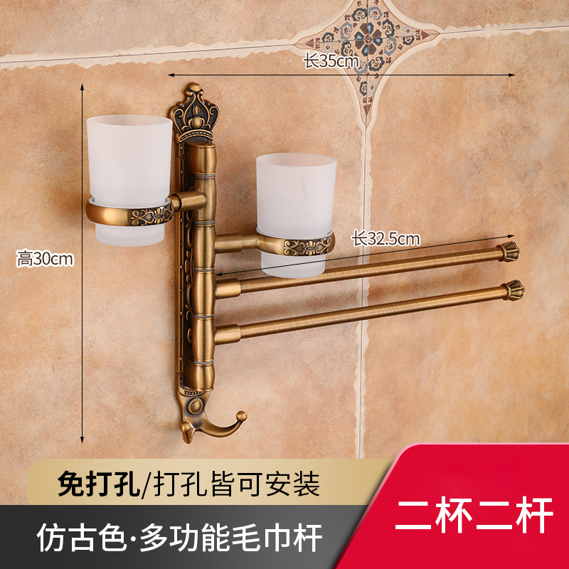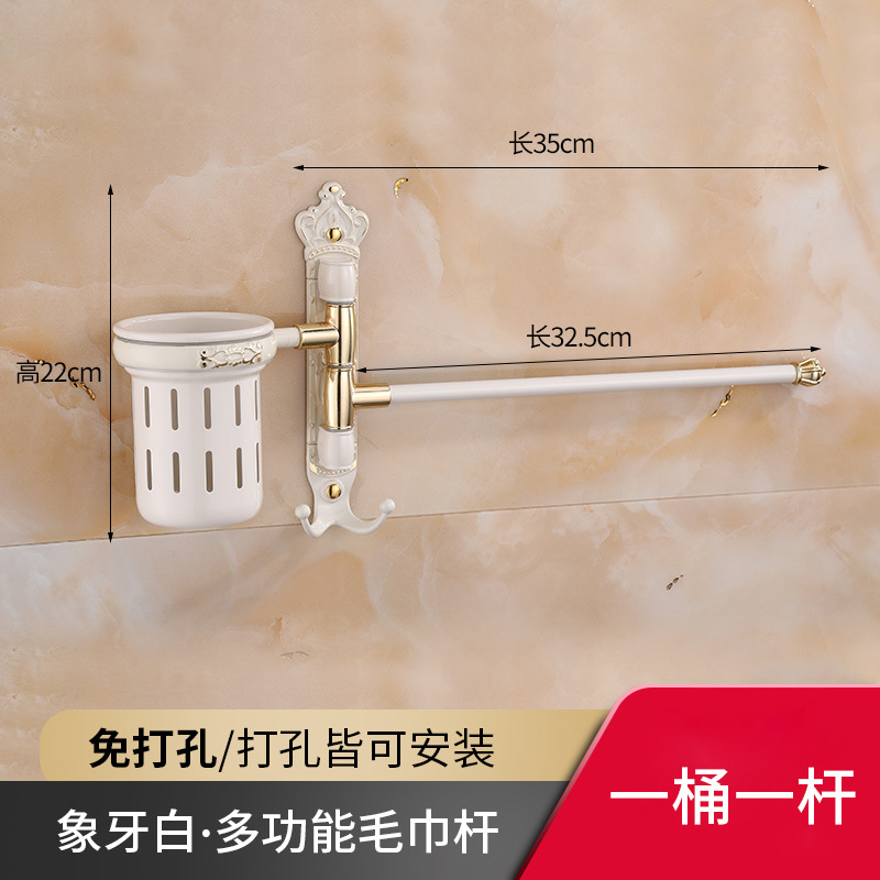 Zhongba 도매 공간 알루미늄 타월 랙 회전 유럽 욕실 칫솔 컵 타월 바 천공 비 천공스토어 가기