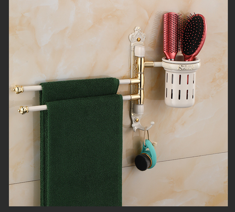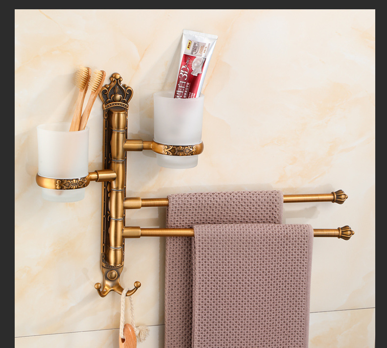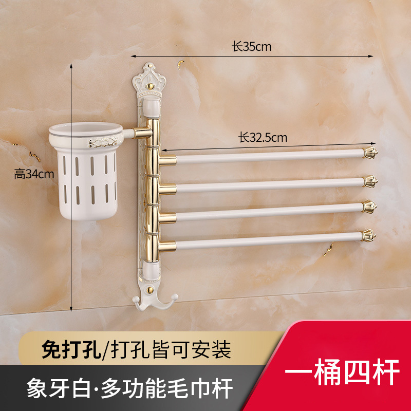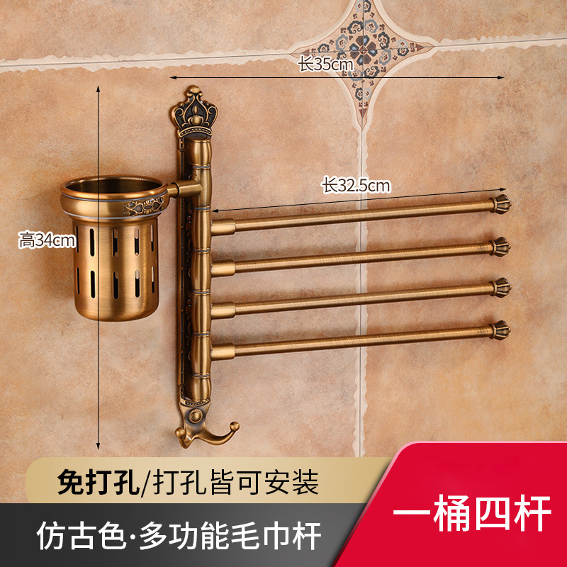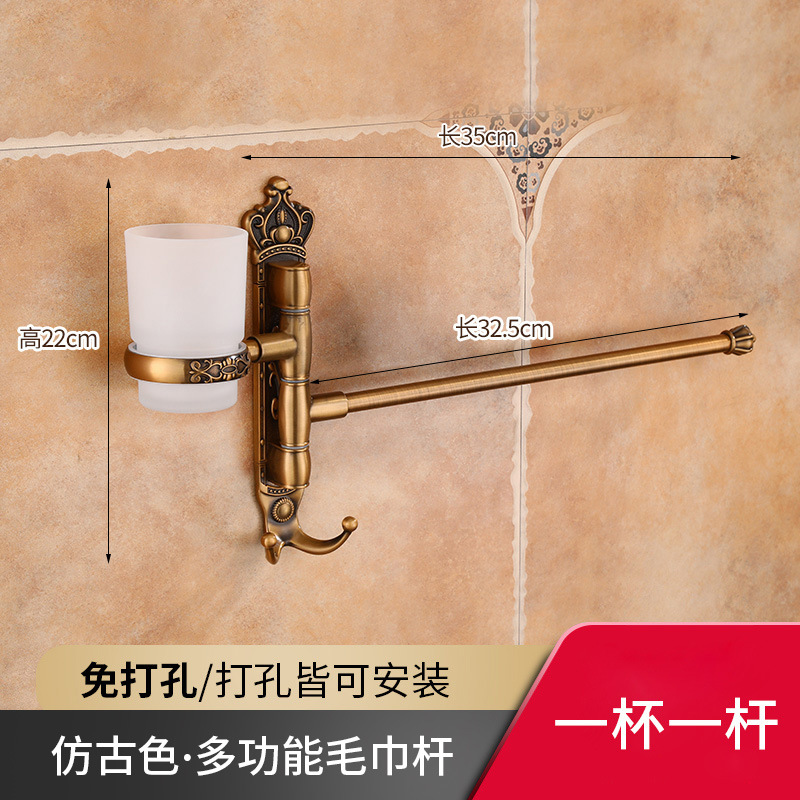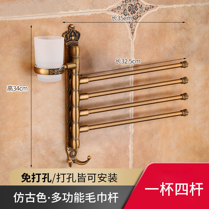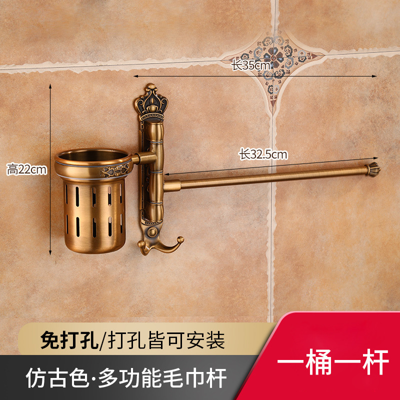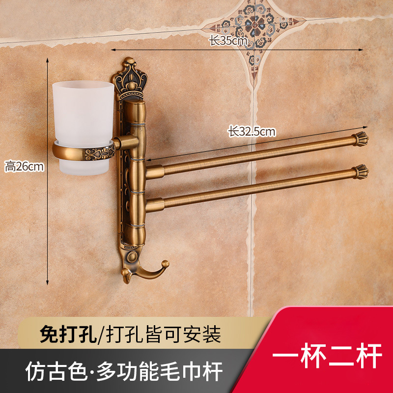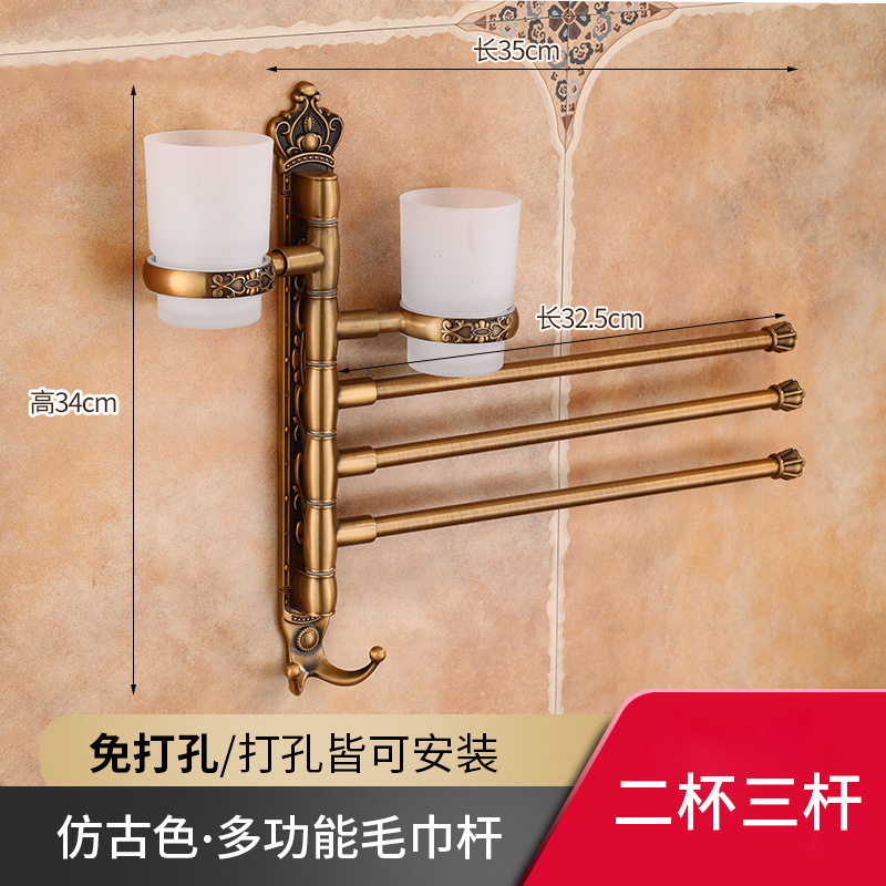 Zhongba 도매 공간 알루미늄 타월 랙 회전 유럽 욕실 칫솔 컵 타월 바 천공 비 천공스토어 가기