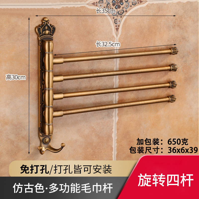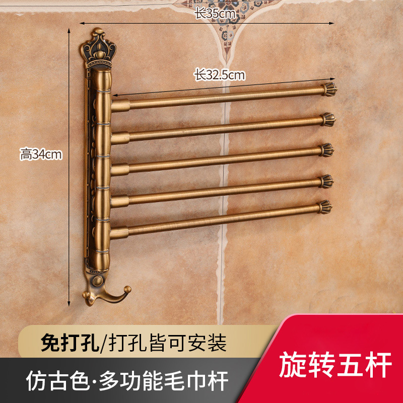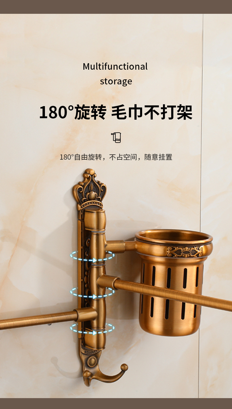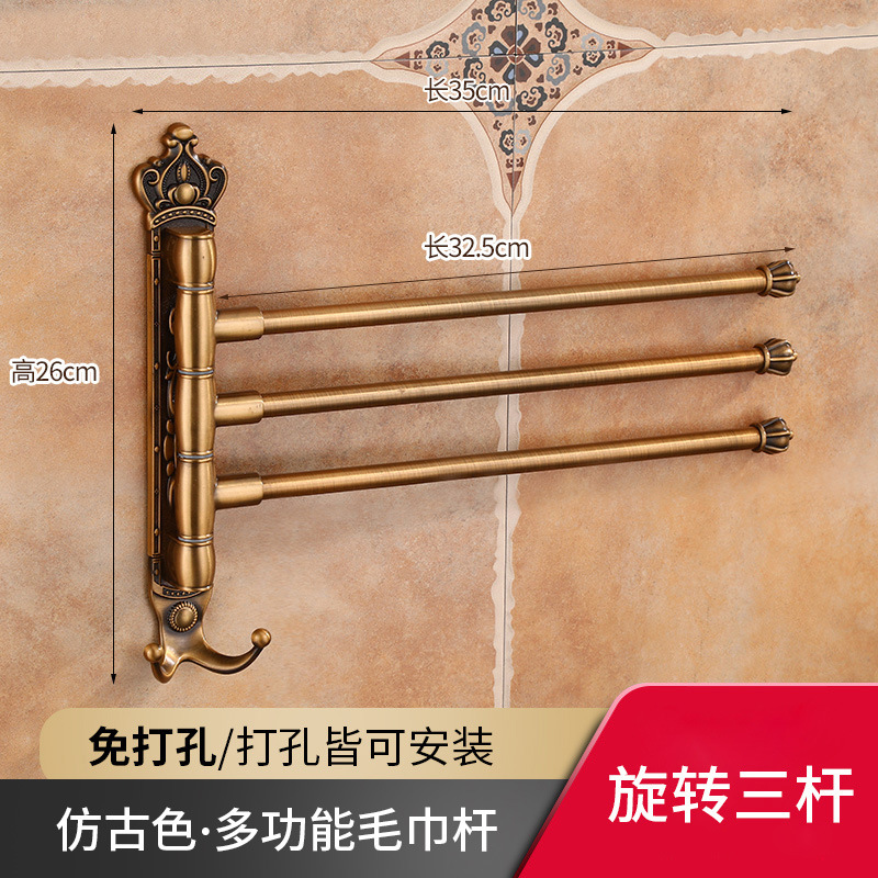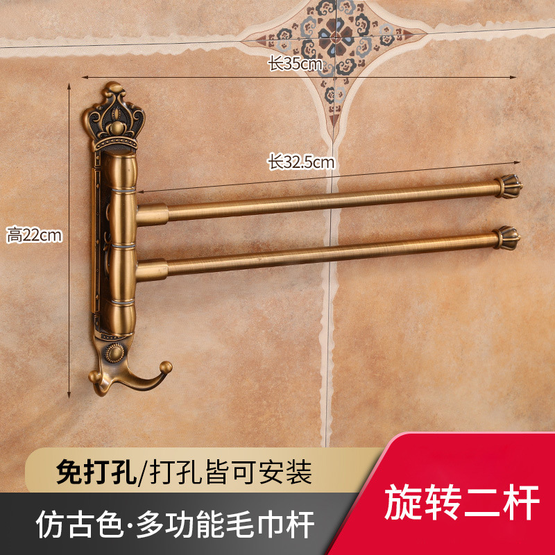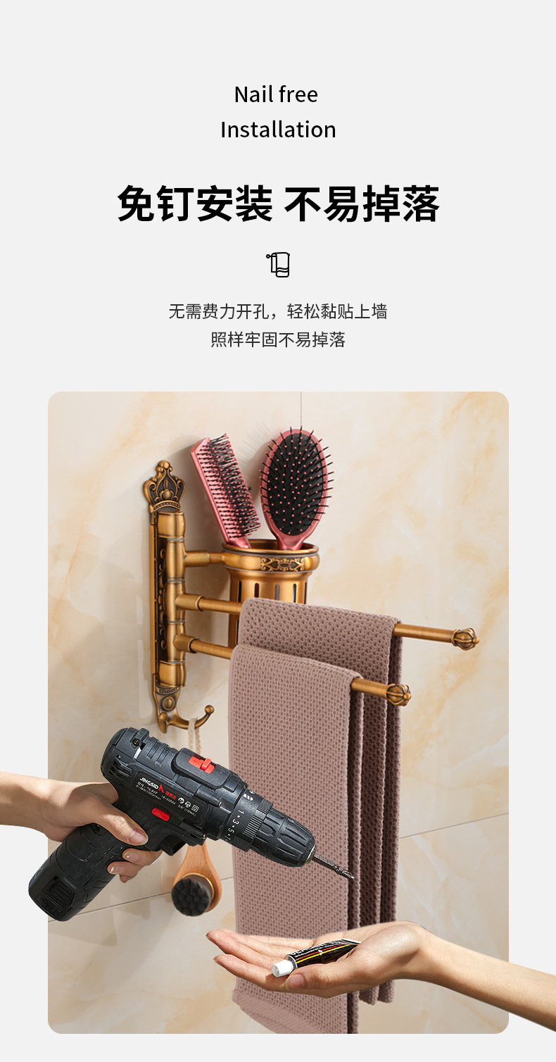Zhongba 도매 공간 알루미늄 타월 랙 회전 유럽 욕실 칫솔 컵 타월 바 천공 비 천공스토어 가기