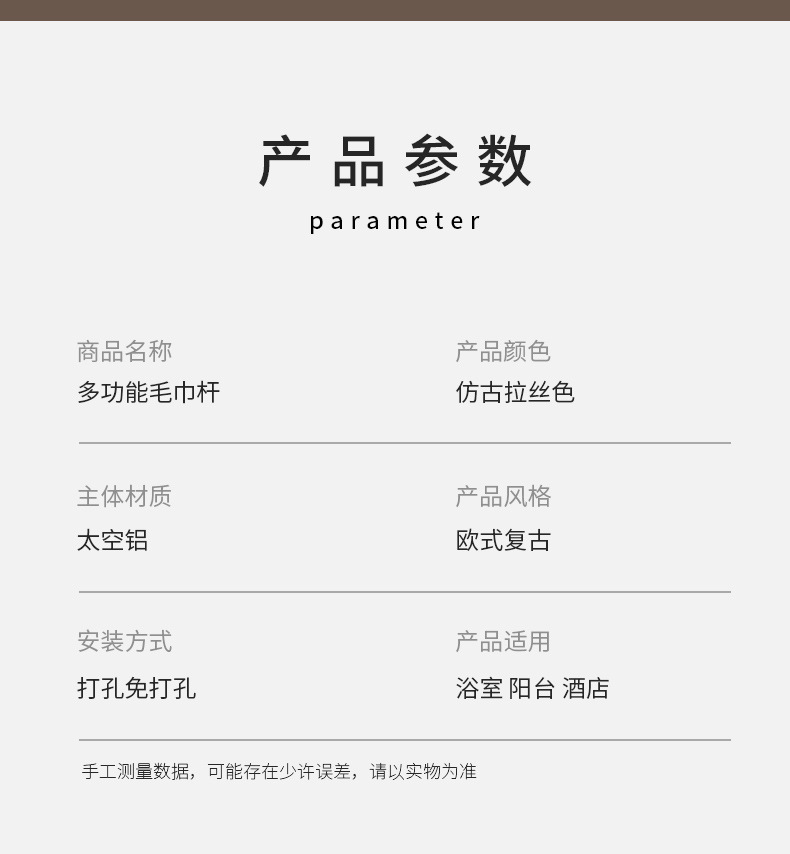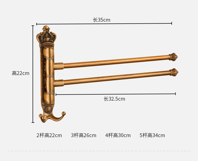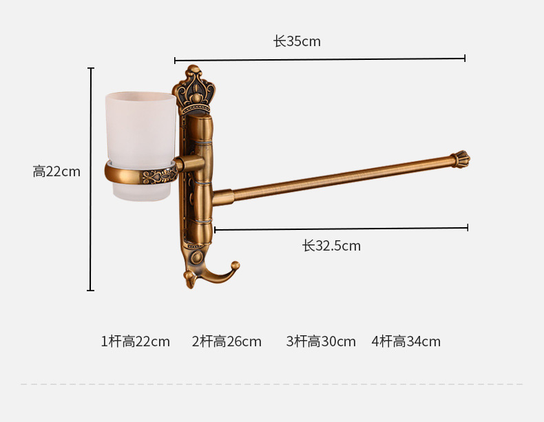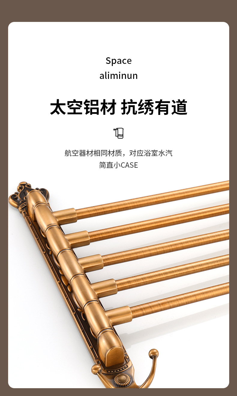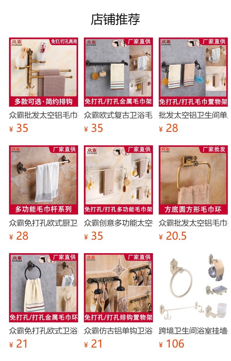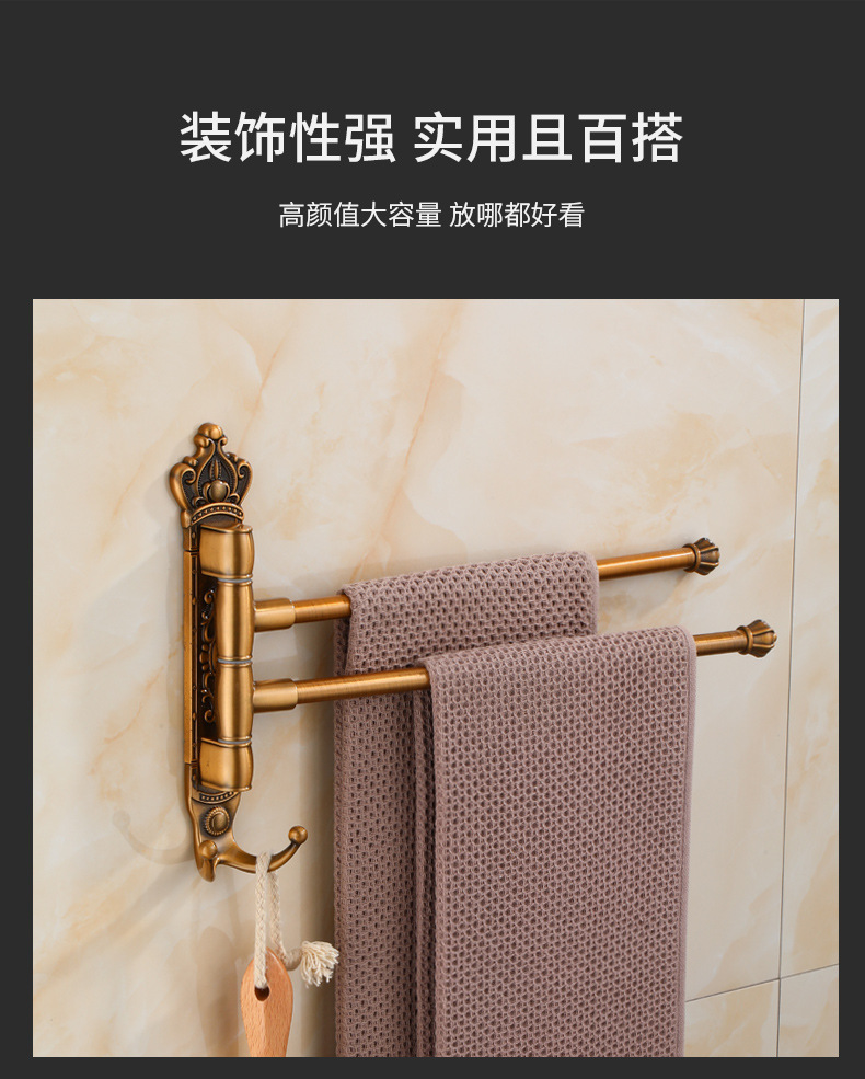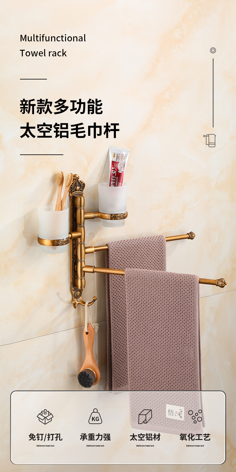 Zhongba 도매 공간 알루미늄 타월 랙 회전 유럽 욕실 칫솔 컵 타월 바 천공 비 천공스토어 가기