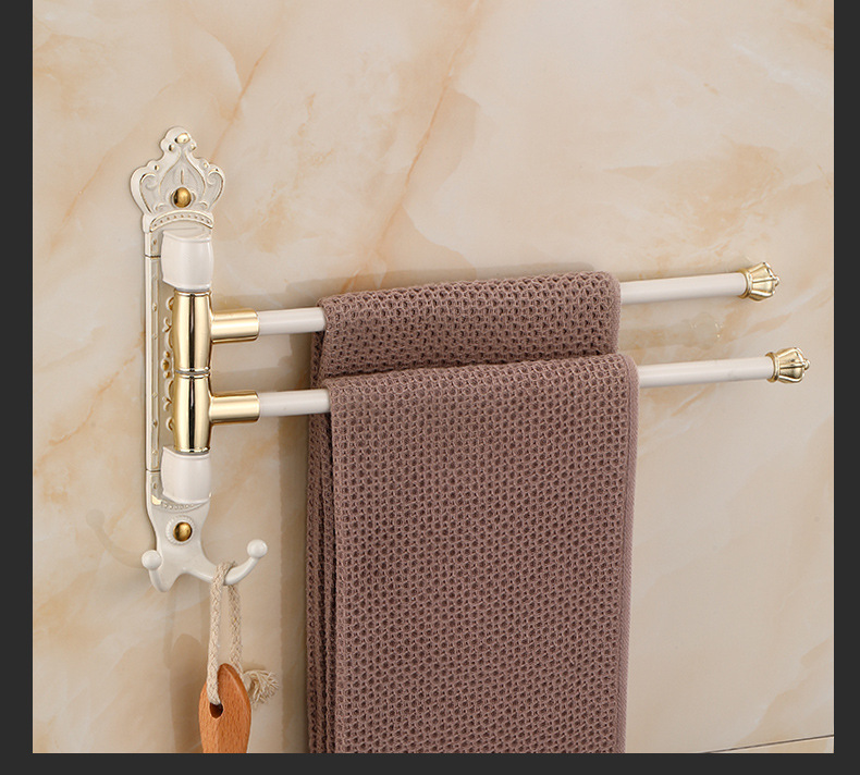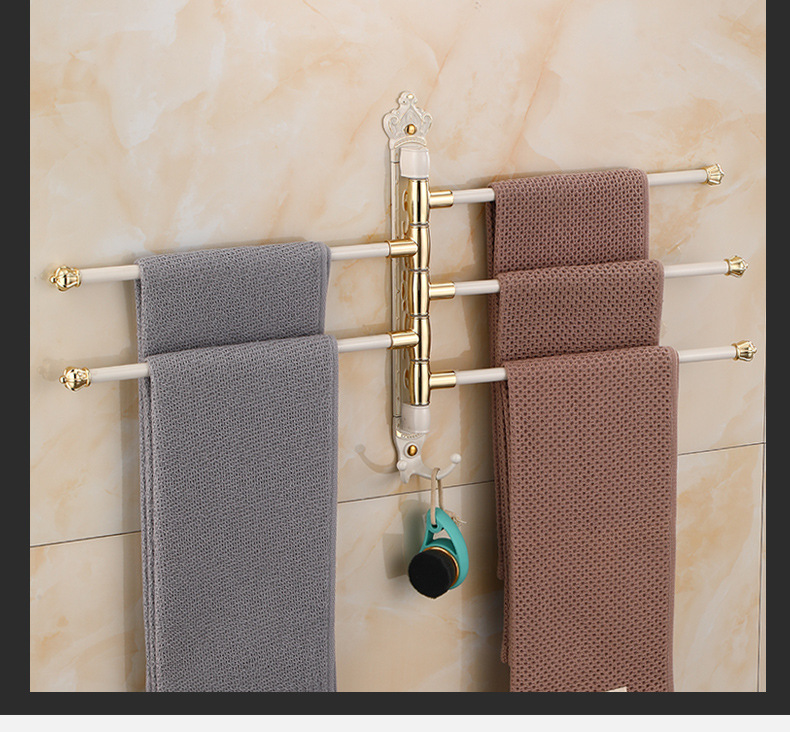 Zhongba 도매 공간 알루미늄 타월 랙 회전 유럽 욕실 칫솔 컵 타월 바 천공 비 천공