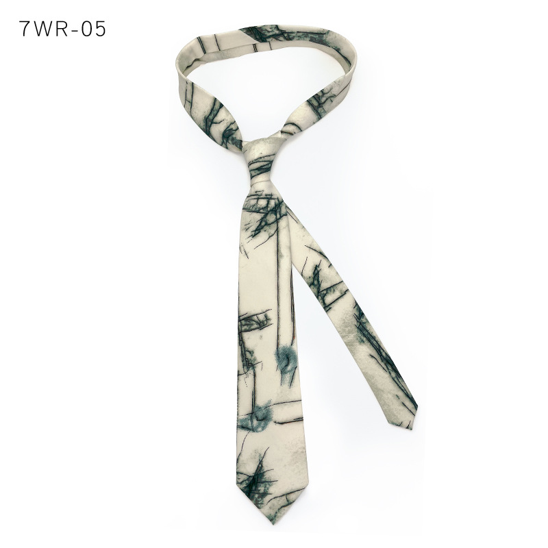 빈티지 7cm 넥타이 남자의 캐주얼 원피스 인쇄 독특한 셔츠 여자의 잉크 식물 꽃 대리석 패턴 손