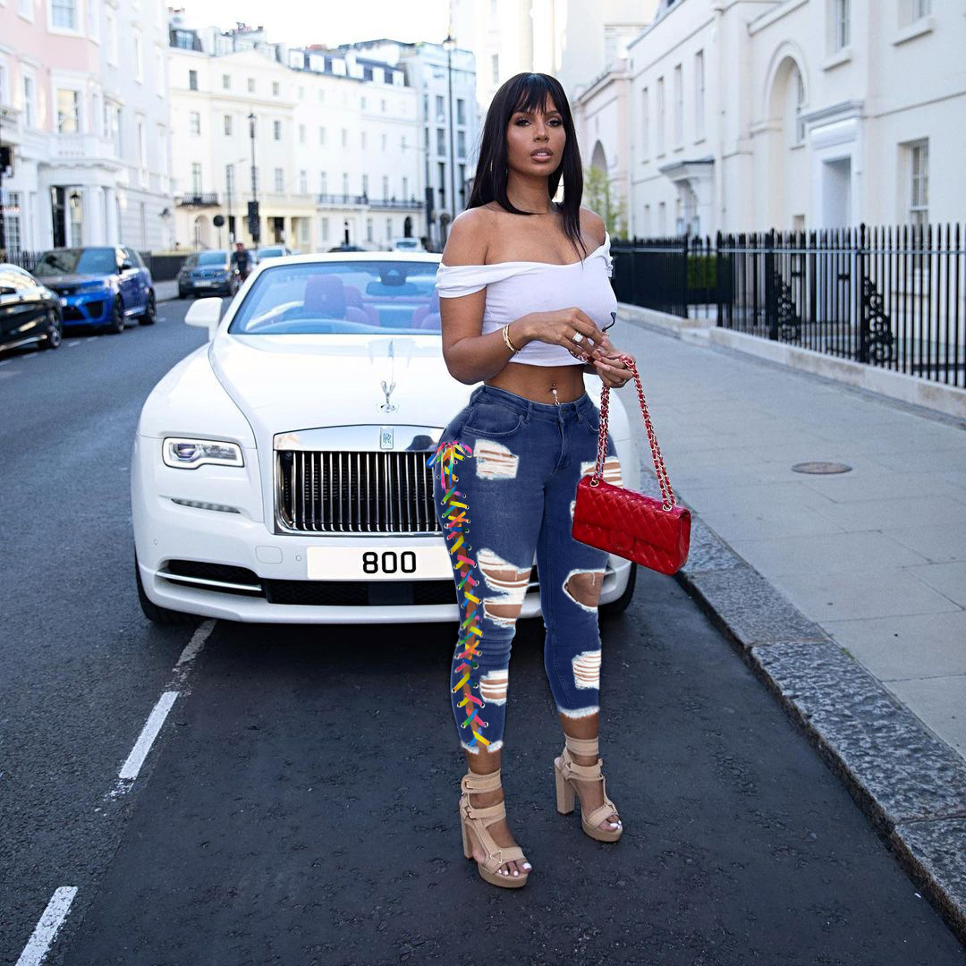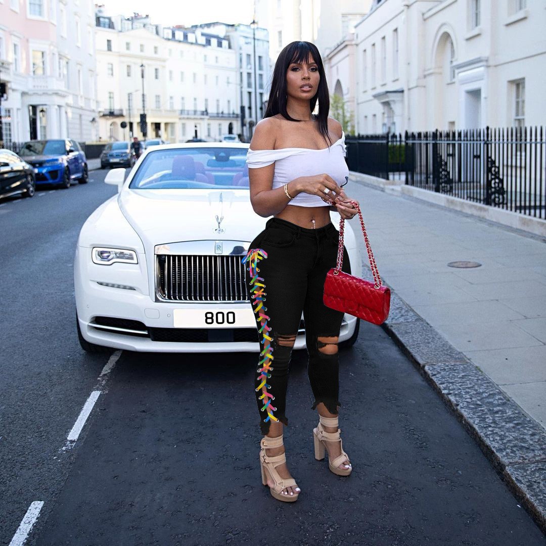 유럽과 미국 크로스 보더 여성 의류 이베이 아마존 소원 패션 섹시한 컬러 스트랩 데님 레깅스 레이스 업 바지스토어 가기