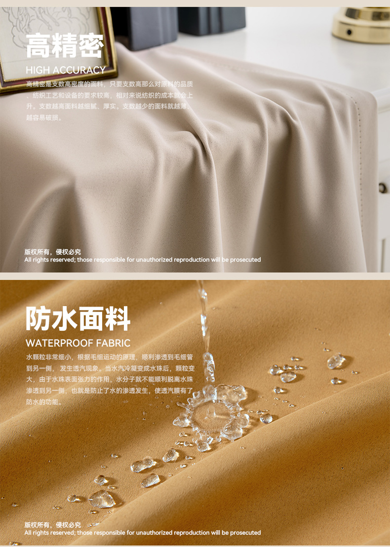 가정 및 호텔용 양면 무광택 방수 단색 커튼 원단, 단색 난연성 및 방수 완제품 커튼