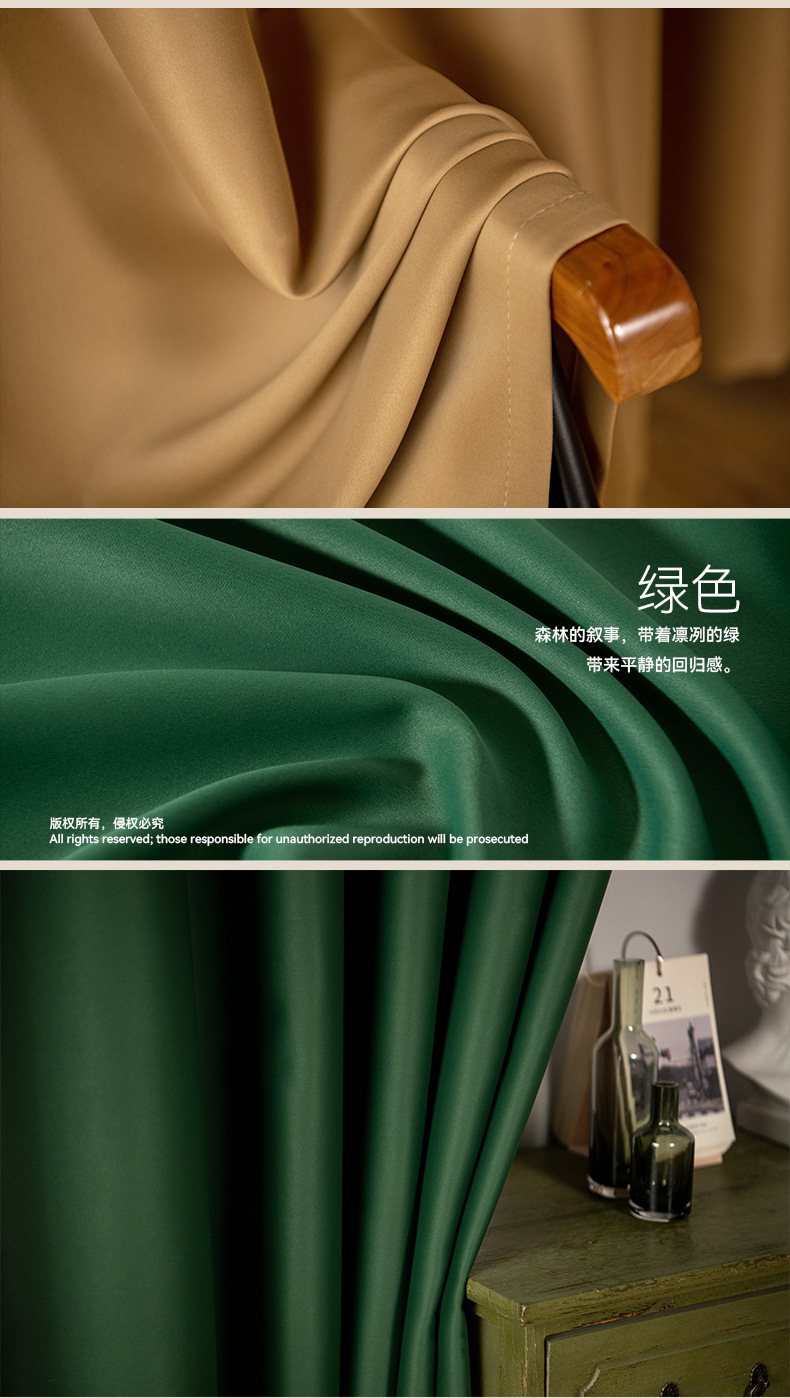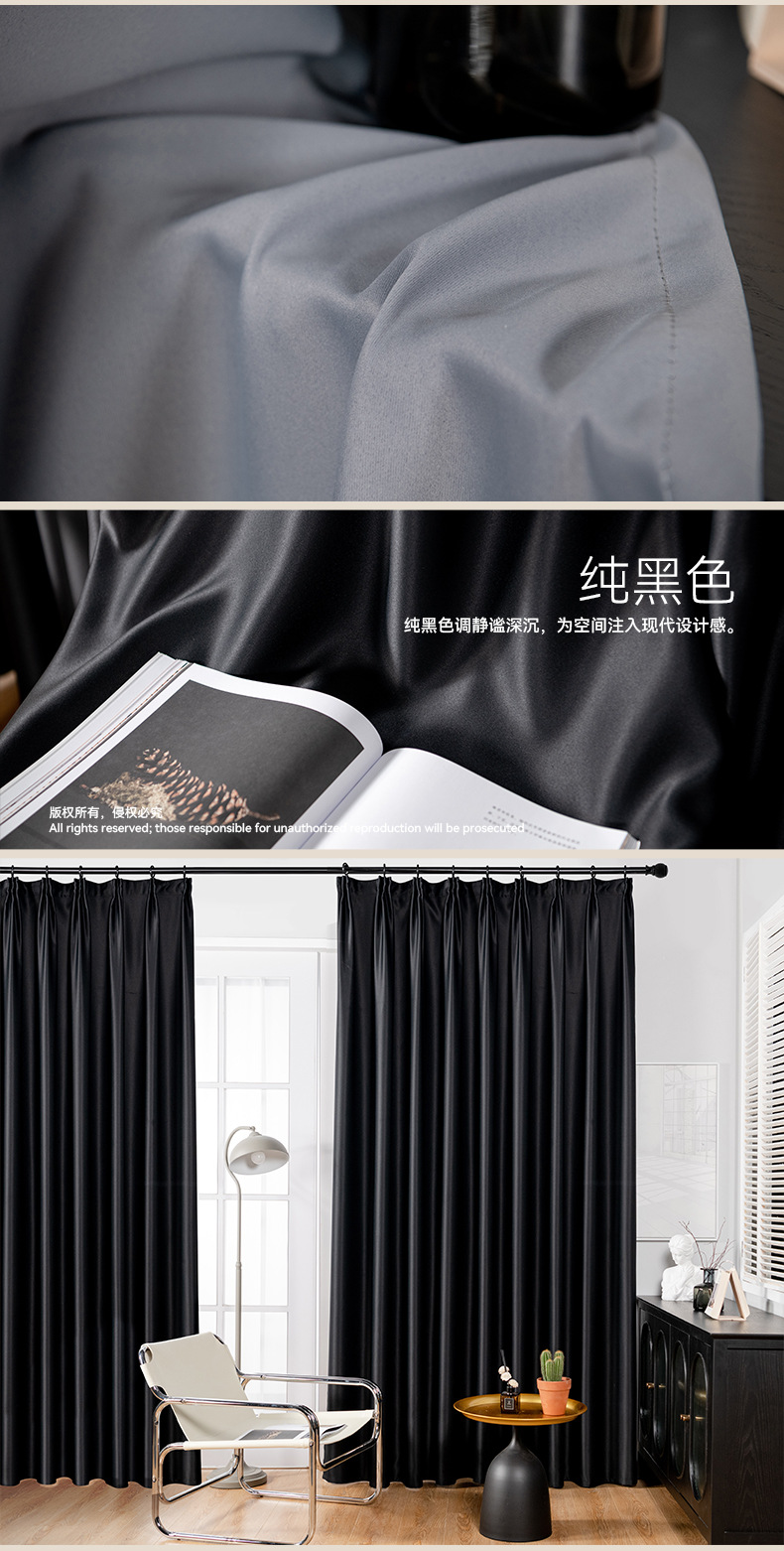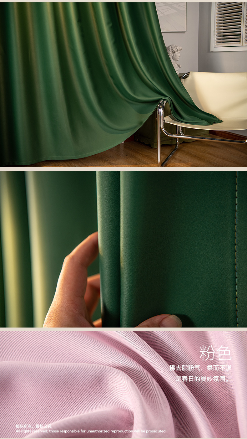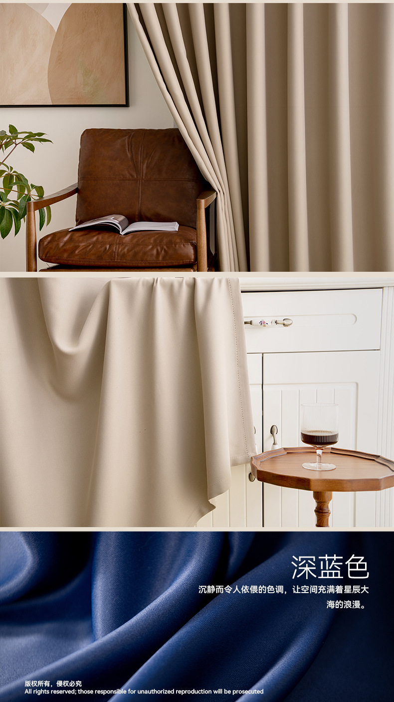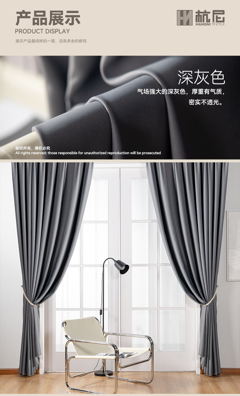 가정 및 호텔용 양면 무광택 방수 단색 커튼 원단, 단색 난연성 및 방수 완제품 커튼스토어 가기