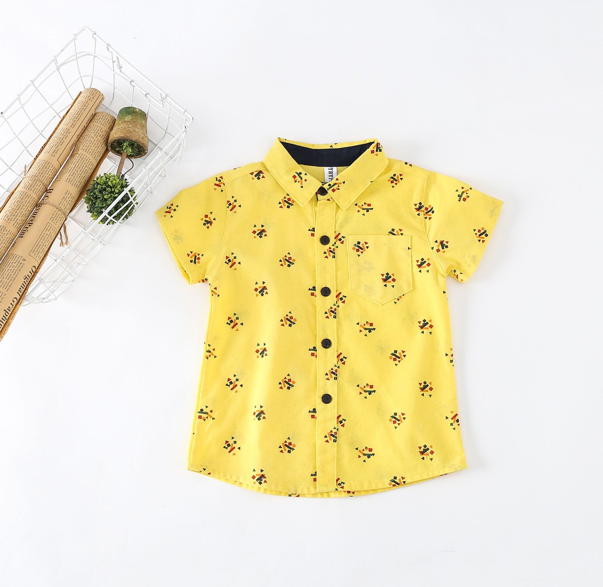 2024 여름 한국 스타일 새로운 어린이 격자 무늬 식물 꽃 프린트 자수 셔츠 한국 스타일 어린이 셔츠스토어 가기