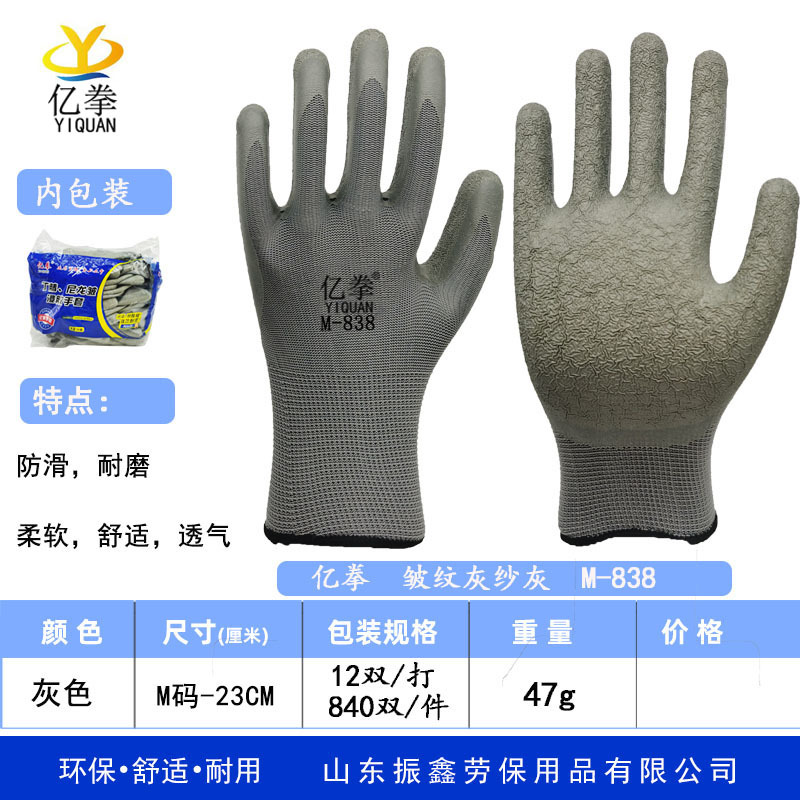 폴리에스터 회색 주름 미끄럼 방지 노동 보호 장갑 라텍스 고무 코팅 작업 장갑 고무 코팅 담근 플라스틱 장갑스토어 가기