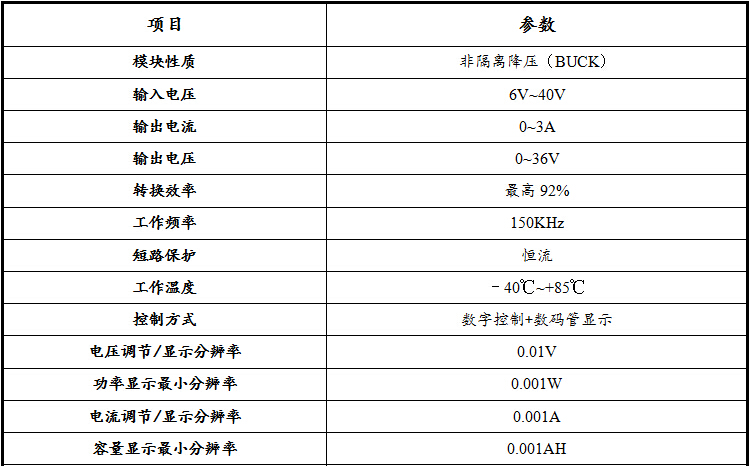 全新的DC-DC降压模块,采用先进微处理器控制,抛弃传统的电位器调节方式,电压电流采用按键精确调节,可以恒压、恒流输出,带有工作状态指示灯,可实时查看工作状态。