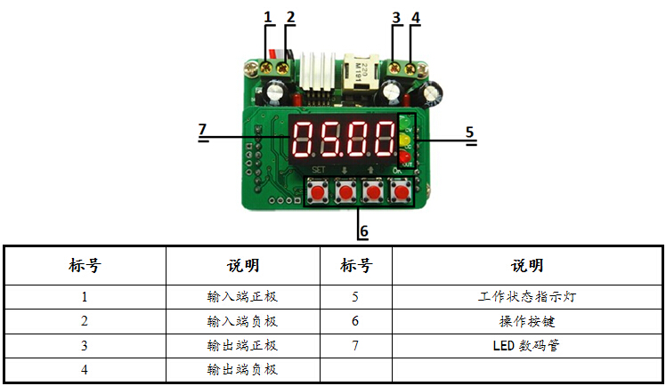 6、采用4位高亮度数码管,可以实时显示输出电压、电流、功率以及容量等参数;