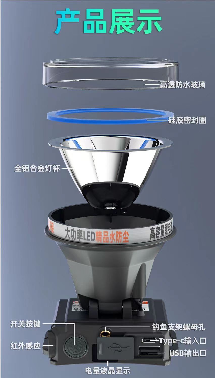 • 7819 다기능 유도 강한 빛 배터리 수명 8-10 시간