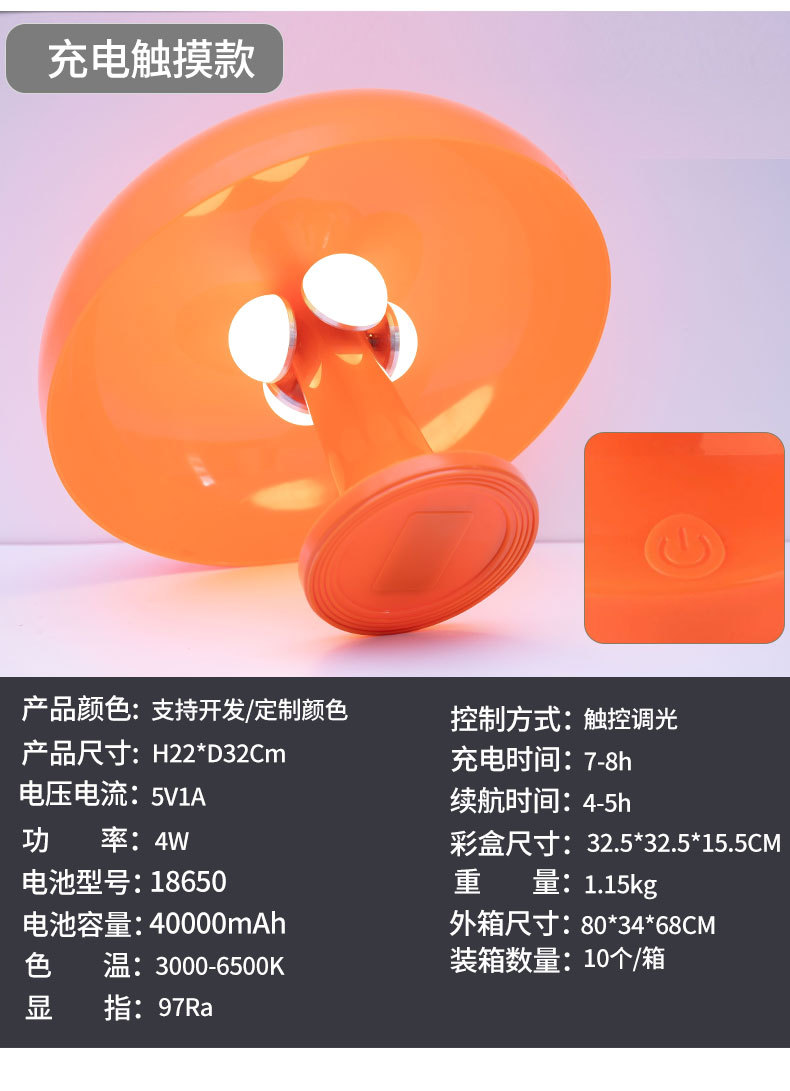 크로스보더 LED 덴마크 버섯 장식 테이블 램프 침실 충전식 조광 가능 B&B 분위기 조명 서재 야간등