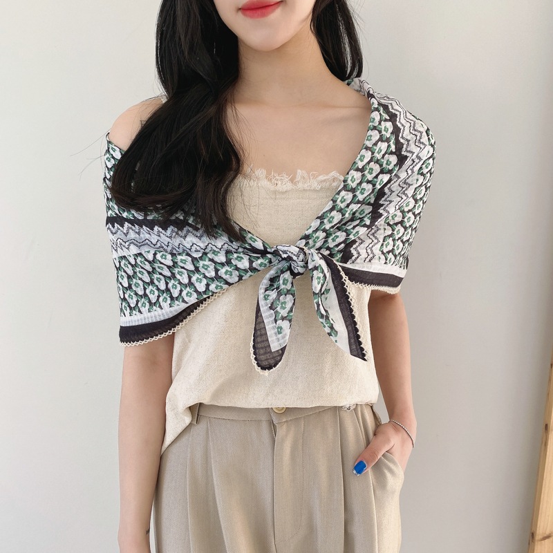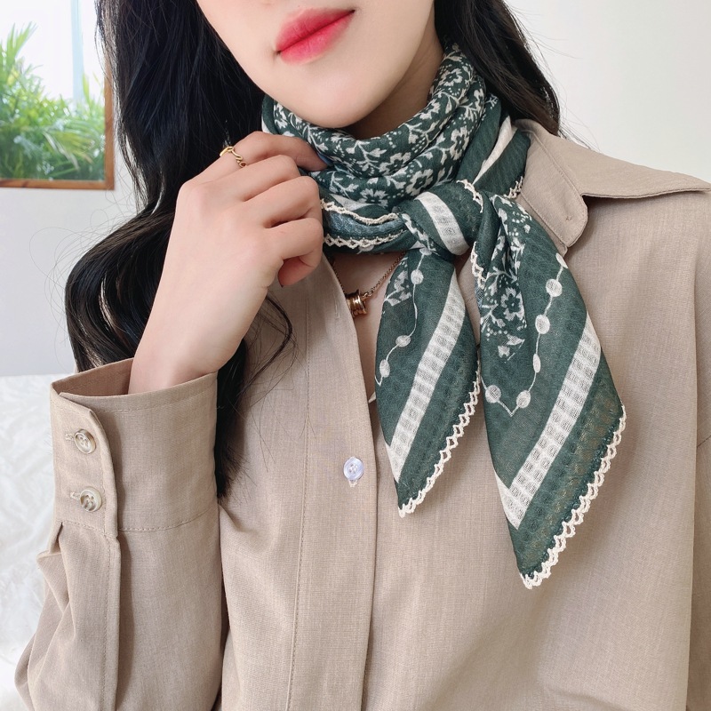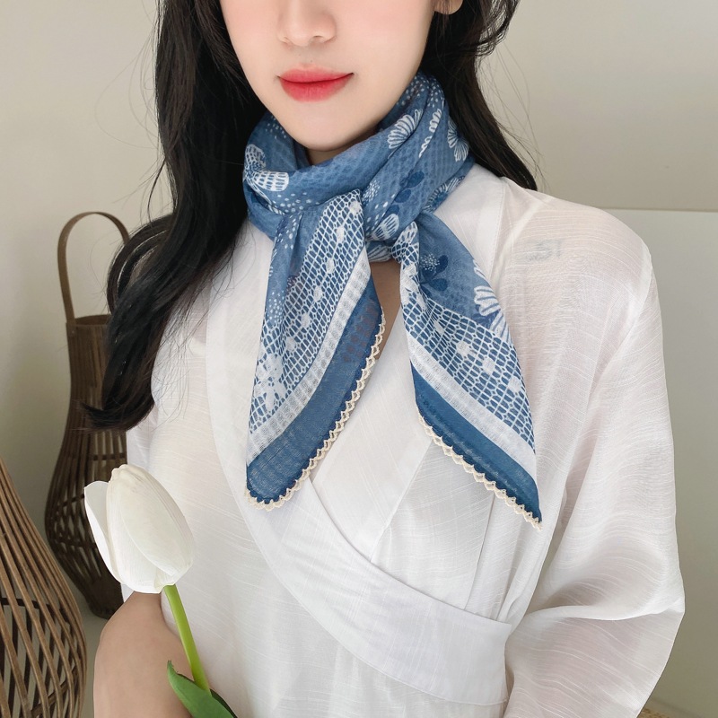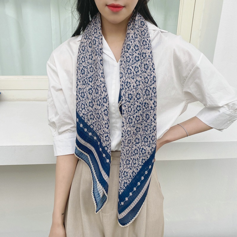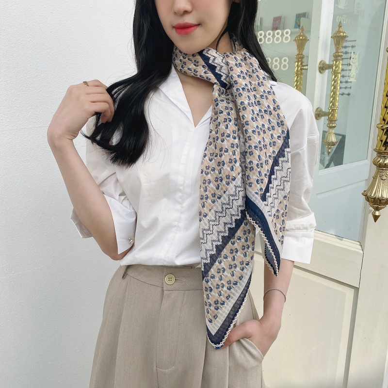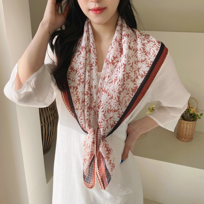 봄과 여름 기질 기하학적 면과 린넨 스퀘어 스카프 여성용 모든 매치 스카프 자외선 차단제 스카프 숄 실크 스카프 얇은 장식 스카프