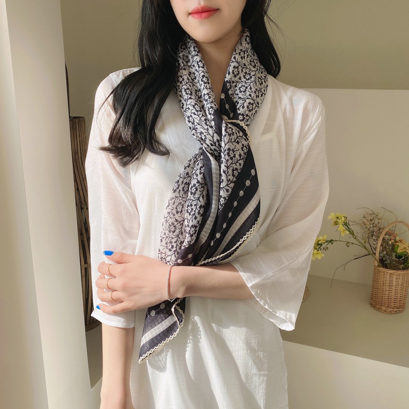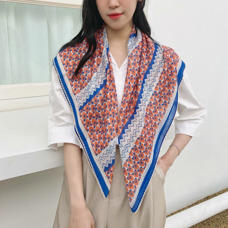 봄과 여름 기질 기하학적 면과 린넨 스퀘어 스카프 여성용 모든 매치 스카프 자외선 차단제 스카프 숄 실크 스카프 얇은 장식 스카프스토어 가기