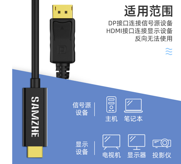 山泽(SAMZHE)ZJX-33 DP公转HDMI转接线 DisplayPort转hdmi公对公转换线 电脑电视视频连接线 3M 黑色