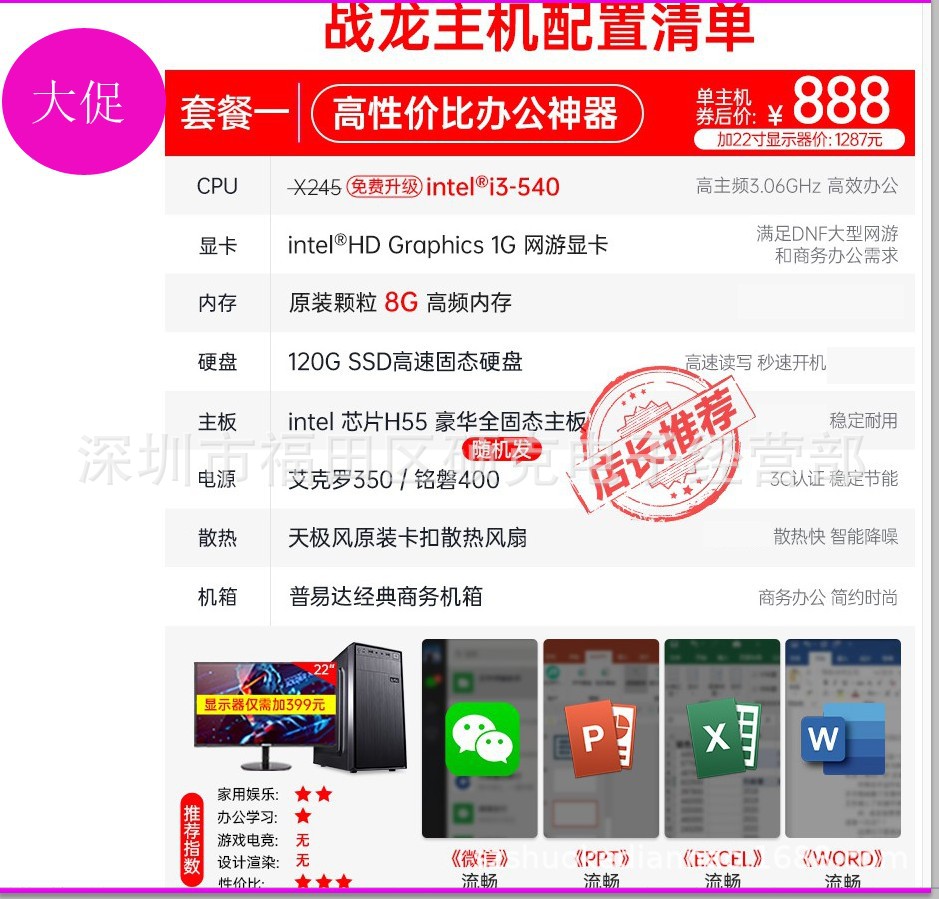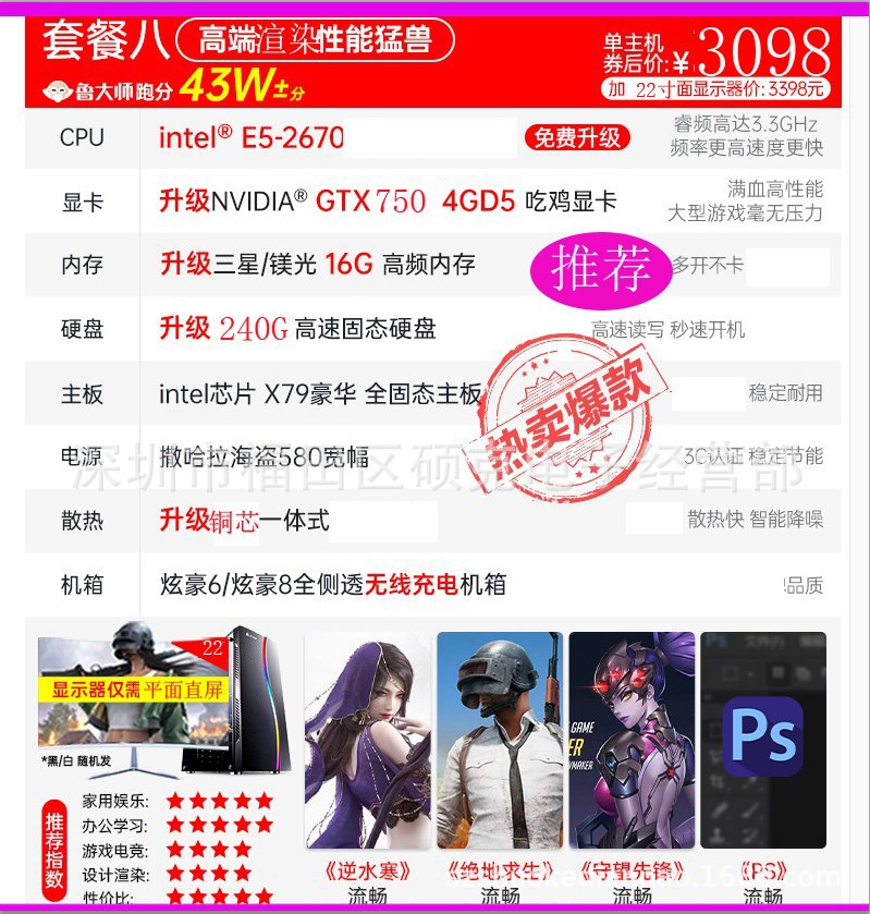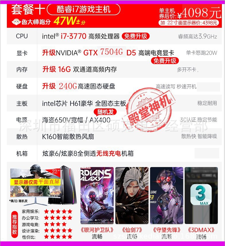 코어 i7 8 핵 RTX3060 단일 디스플레이 어셈블리 컴퓨터 호스트 오피스 게임 데스크탑 머신 치킨 풀 세트스토어 가기