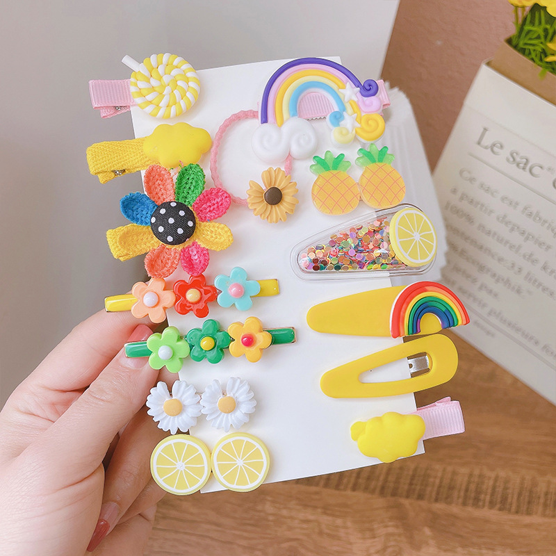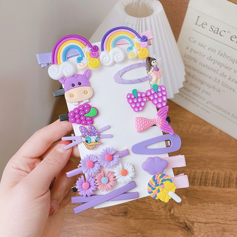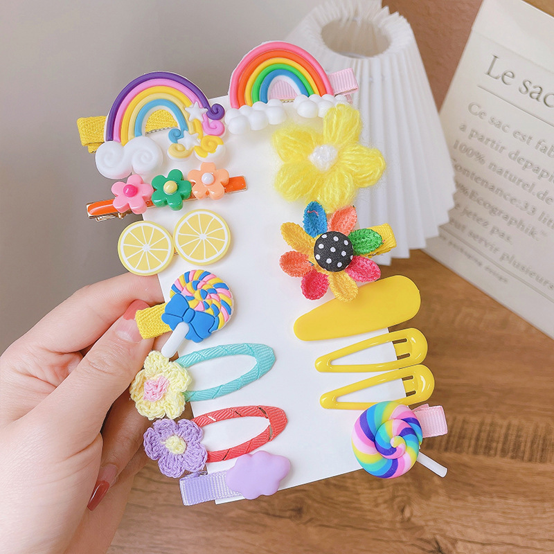 14 종 세트 어린이 머리핀 한국 여자 머리 장식 한국식 BB 클립 귀여운 깨진 머리핀 아기 공주 머리 액세서리