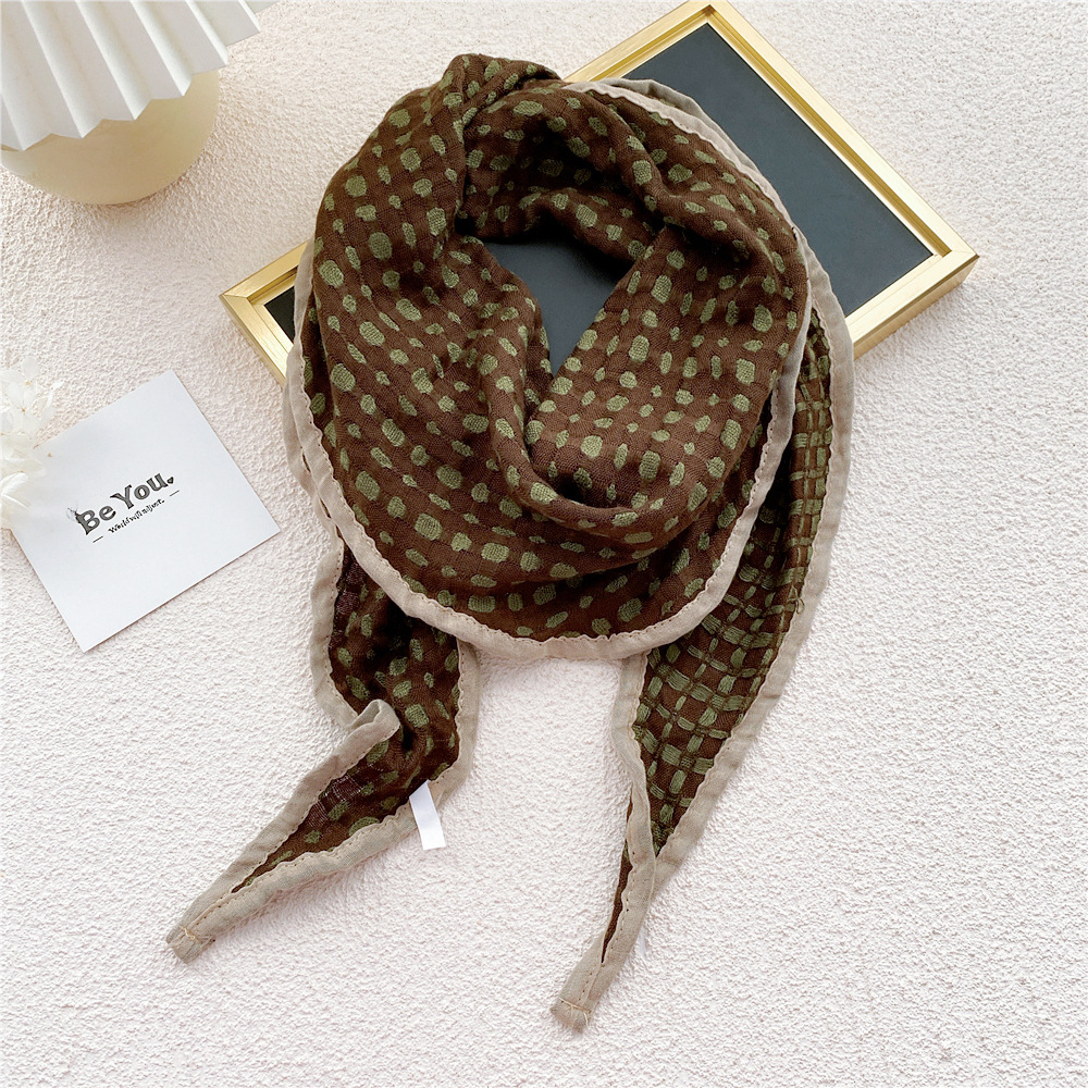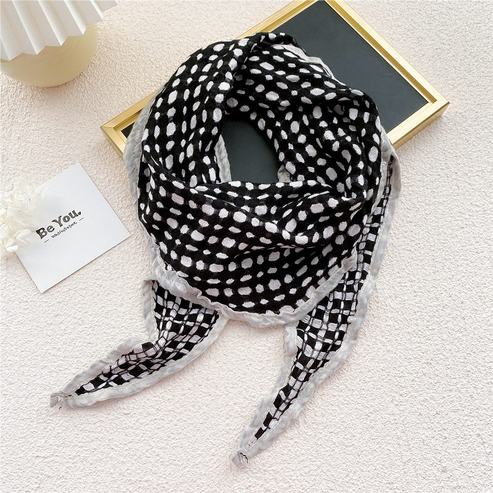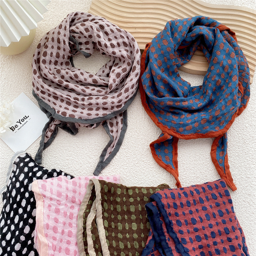 양면 격자 무늬 도트 면과 린넨 다이아몬드 스카프 실크 스카프 여성의 봄과 가을 여름 한국 패션 미술 학생 장식 스카프