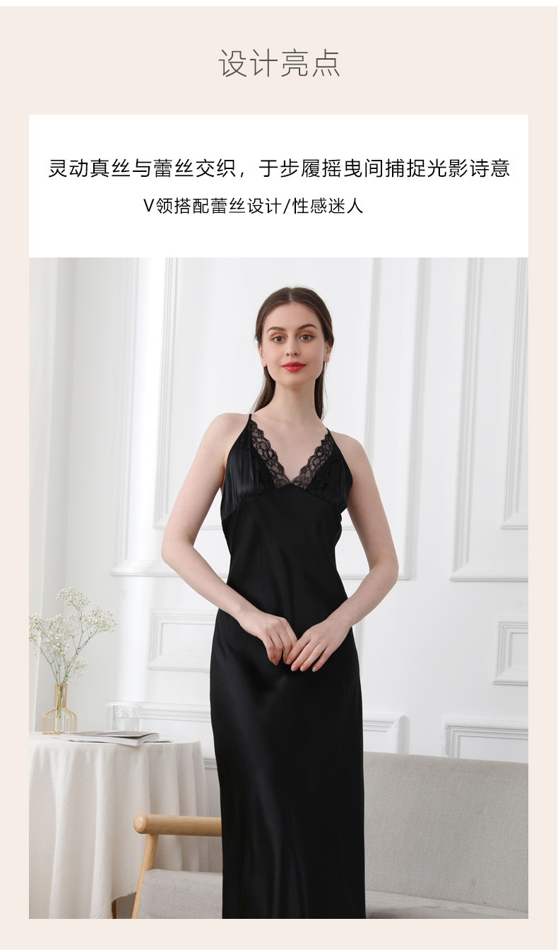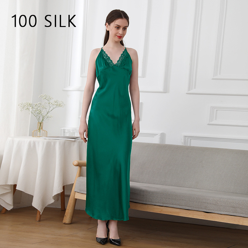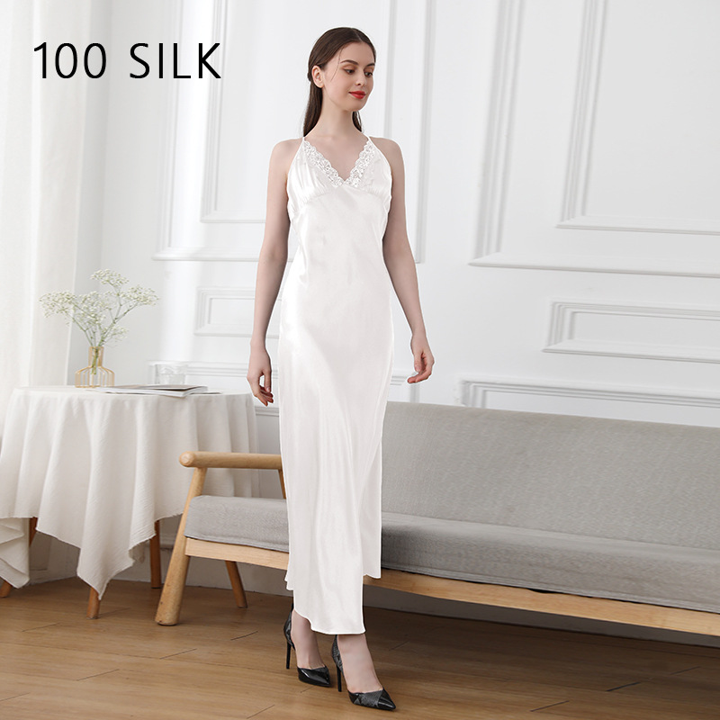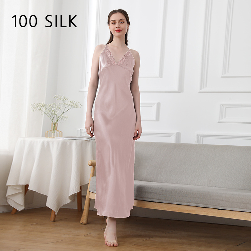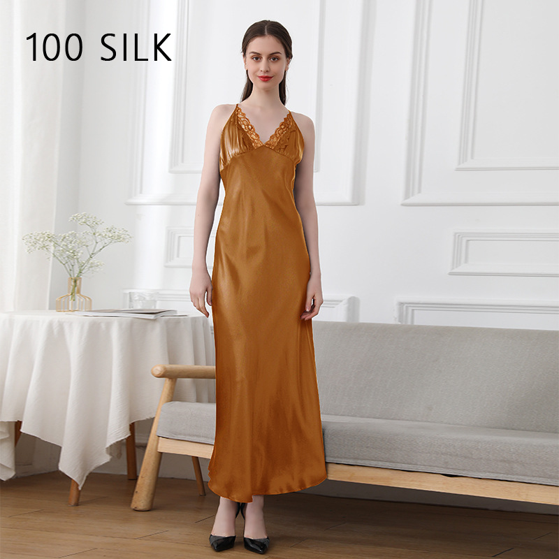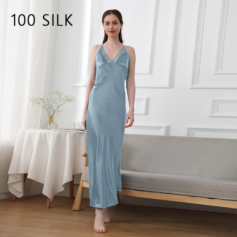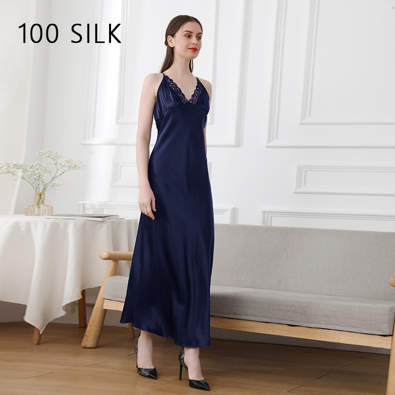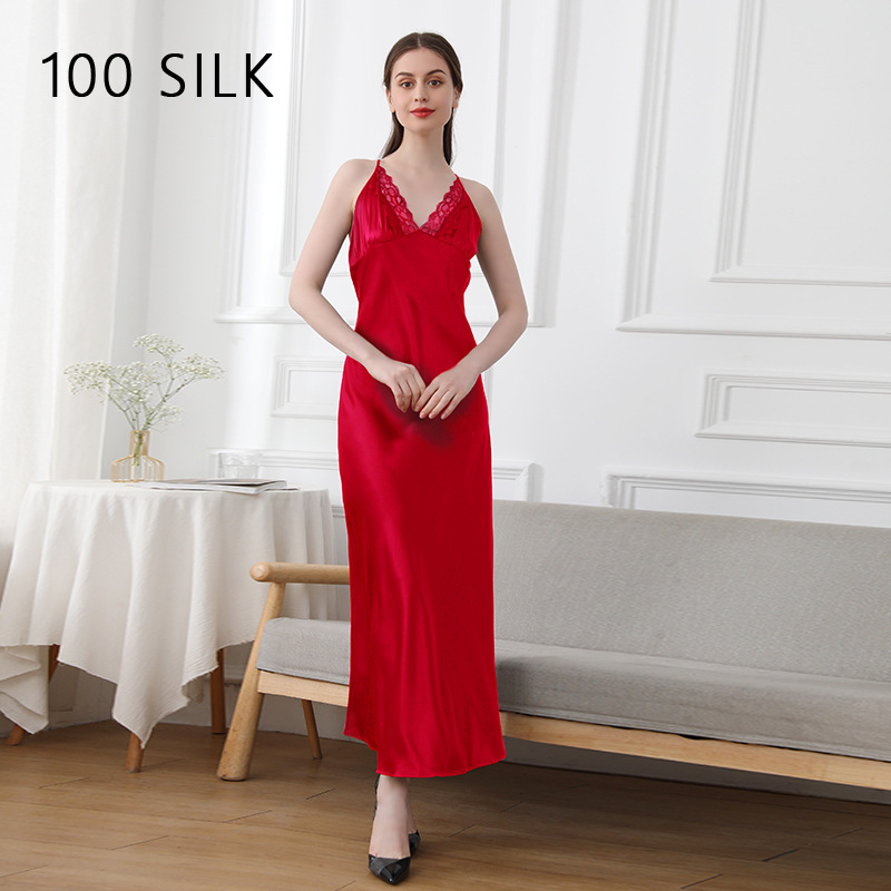 코코니 헤비급 실크 슬립 드레스 여성용 100% 뽕나무 실크 얇은 홈웨어 레이스 트림 섹시한 잠옷