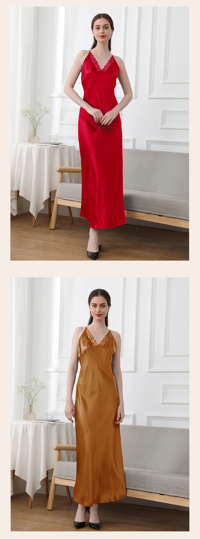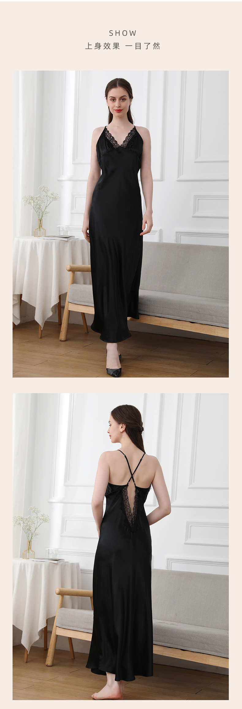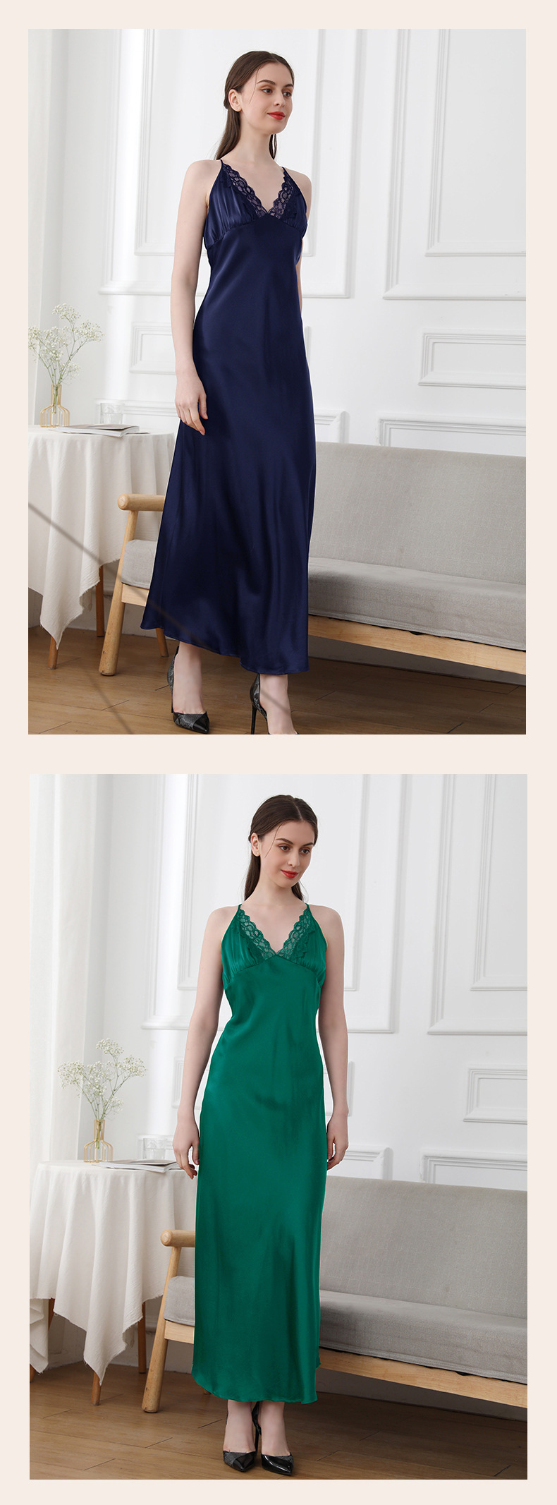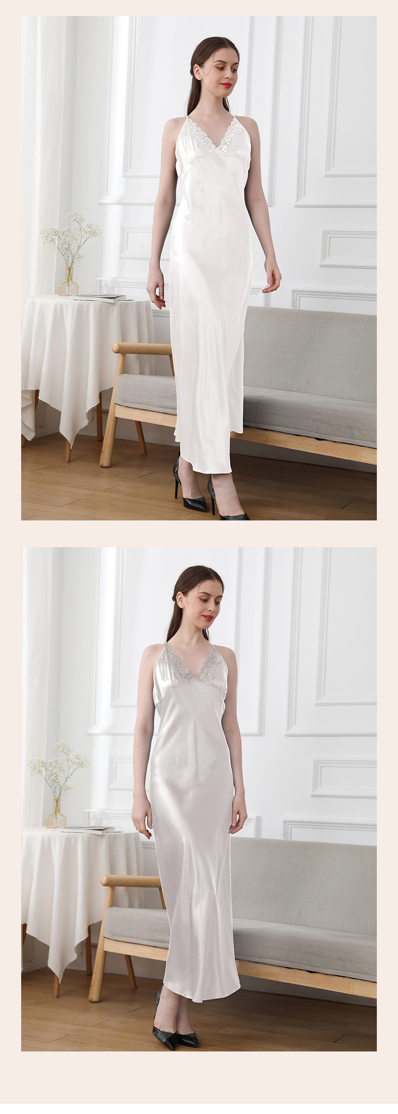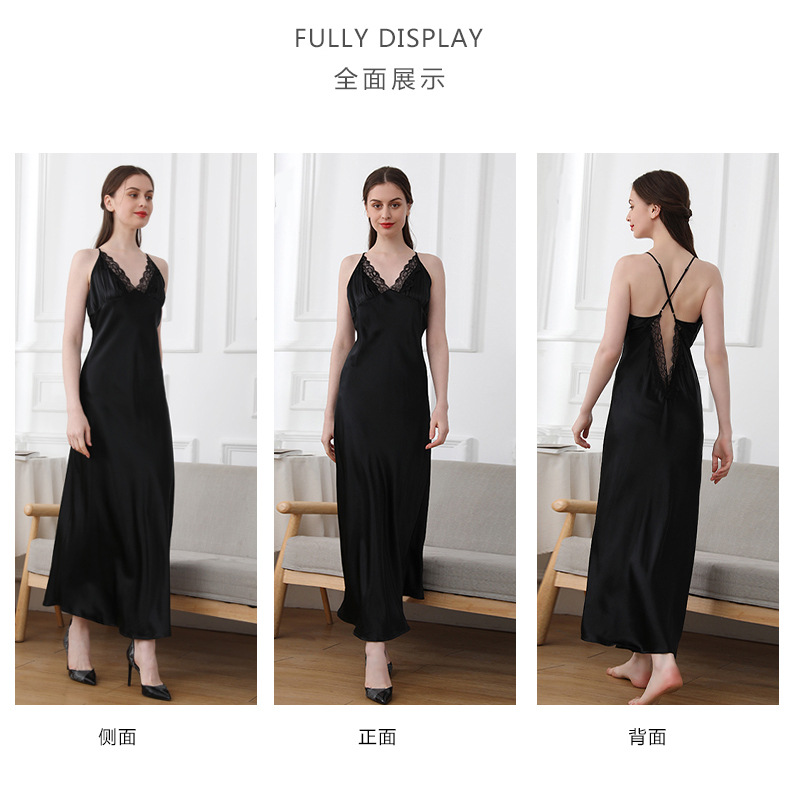 코코니 헤비급 실크 슬립 드레스 여성용 100% 뽕나무 실크 얇은 홈웨어 레이스 트림 섹시한 잠옷