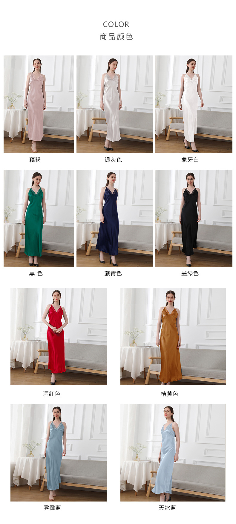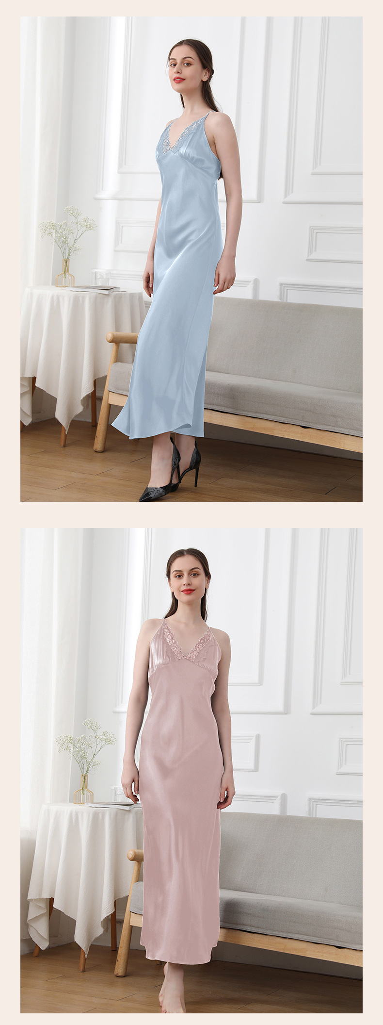 코코니 헤비급 실크 슬립 드레스 여성용 100% 뽕나무 실크 얇은 홈웨어 레이스 트림 섹시한 잠옷스토어 가기