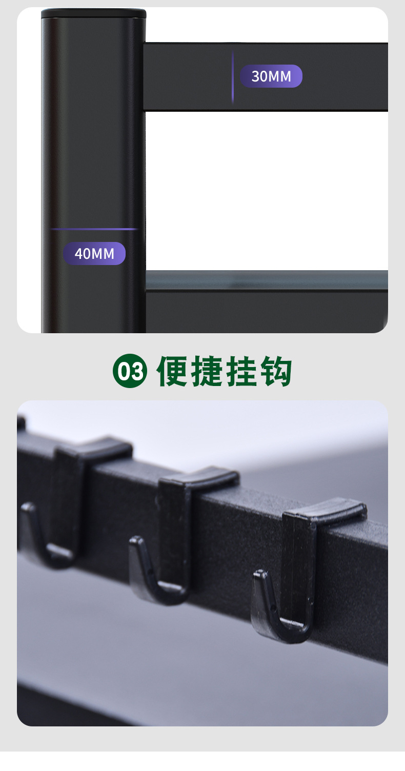 • 블랙 싱글 레이어 개폐식 + 6 후크 + 도마 랙