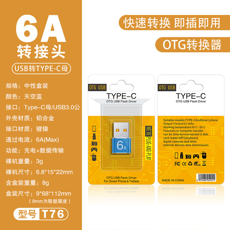 • 【종이 포장】 USB to Type-C 암 T76 스카이 블루