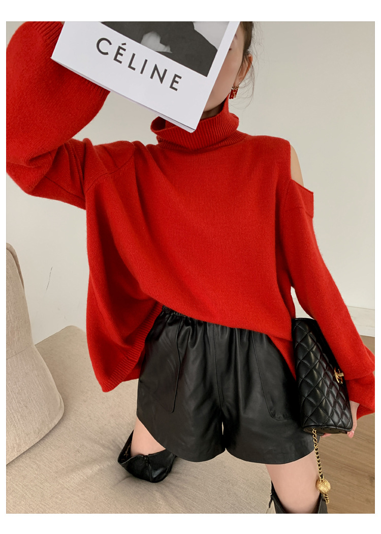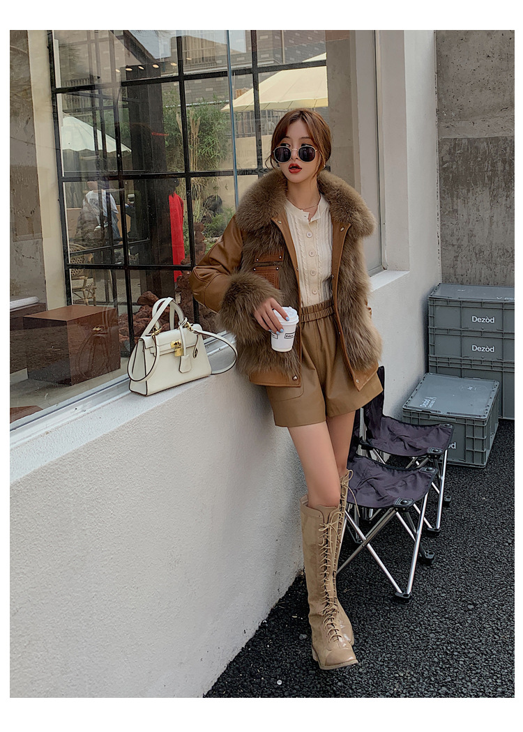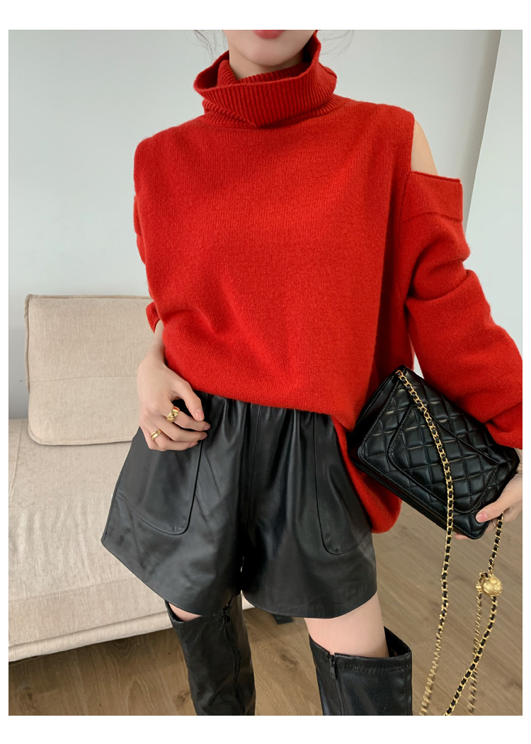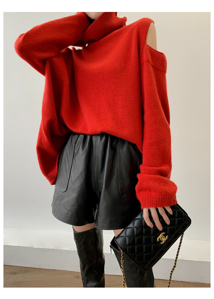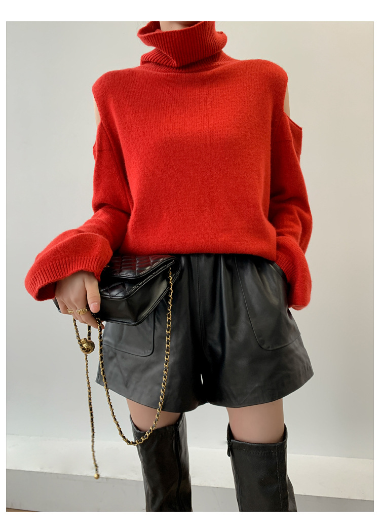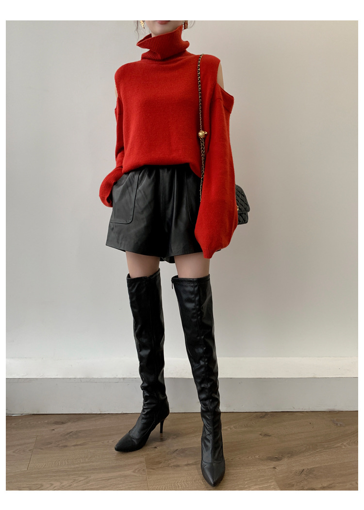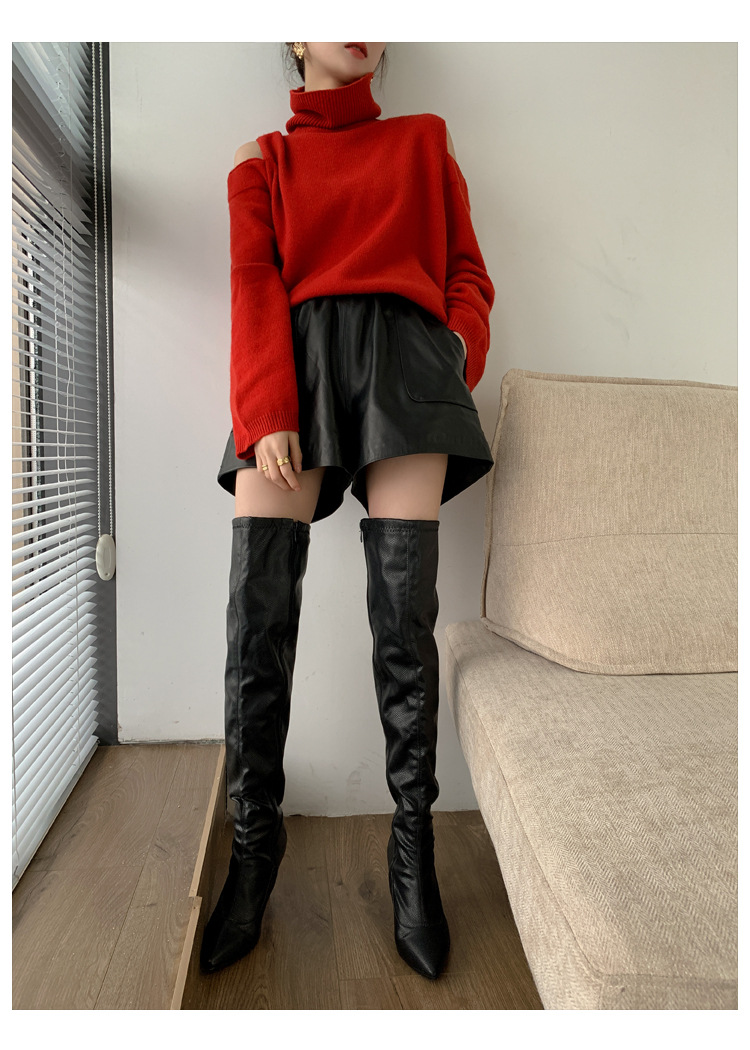 양모 가죽 바지 봄과 가을 새로운 하이 허리 탄성 허리 슬리밍 모든 매치 와이드 레그 팬츠 여성용 가죽 바지 반바지