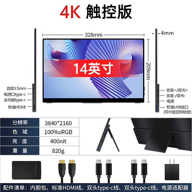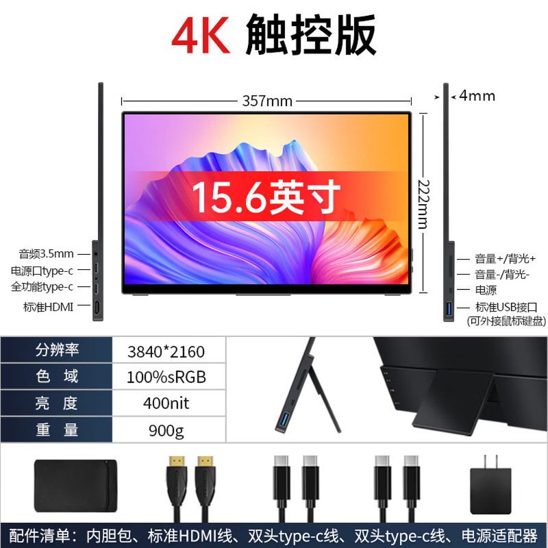 拥有CE认证 电脑显示屏 外接屏 手机 学习 新款 信用卡/花呗 Switch 4k超高清 15英寸