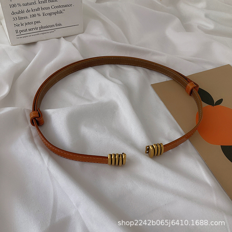 정품 가죽 벨트 여성 애벌레 벨트 장식 원피스 스웨터 세트 코트 액세서리 다운 재킷 허리 커버 in