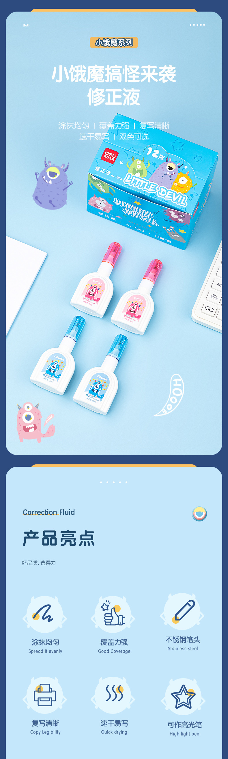 델리 보정 유체 7283 보정 유체 흰색 보정 유체 학생들은 귀여운 보정 유체 보정 펜을 사용합니다스토어 가기