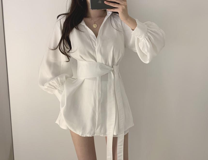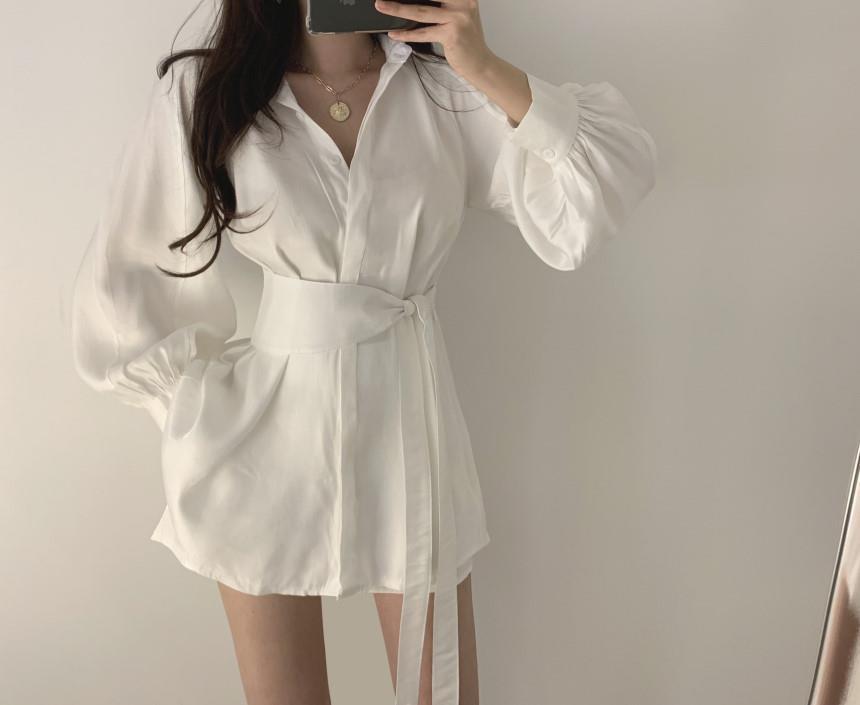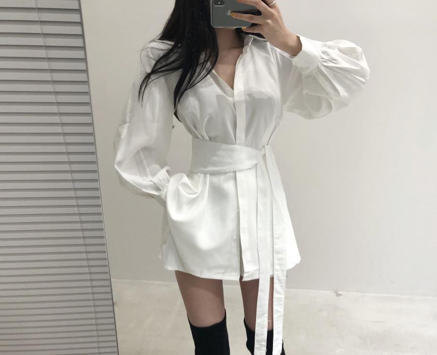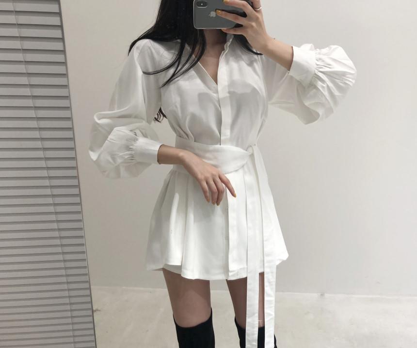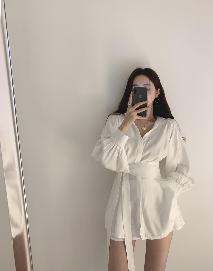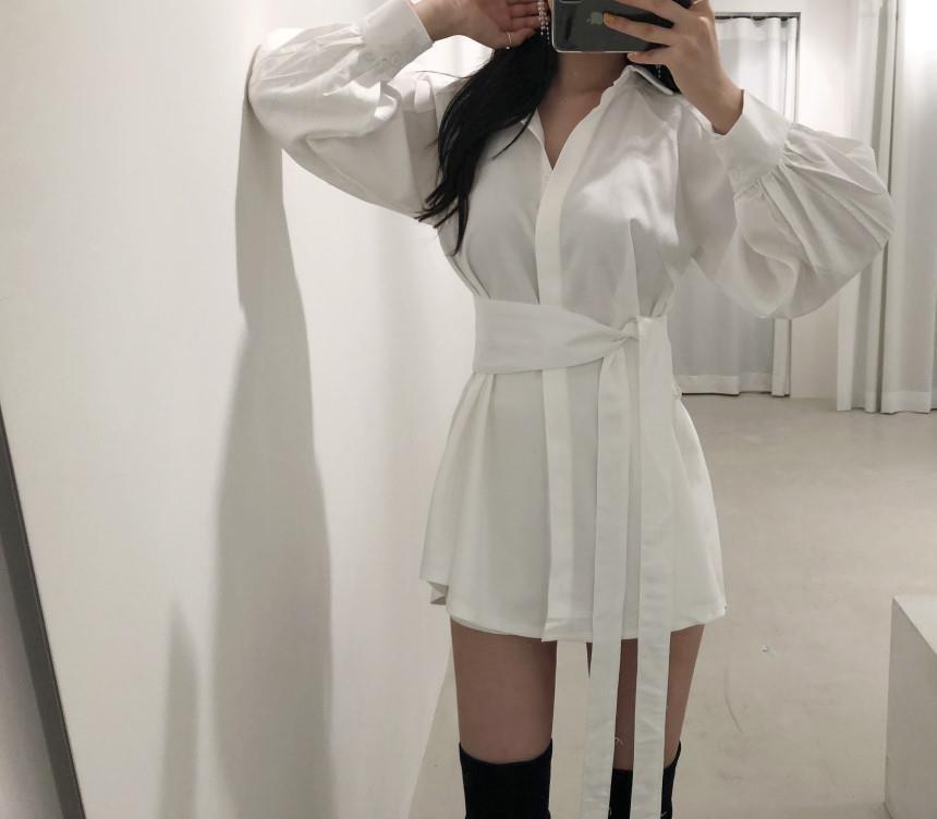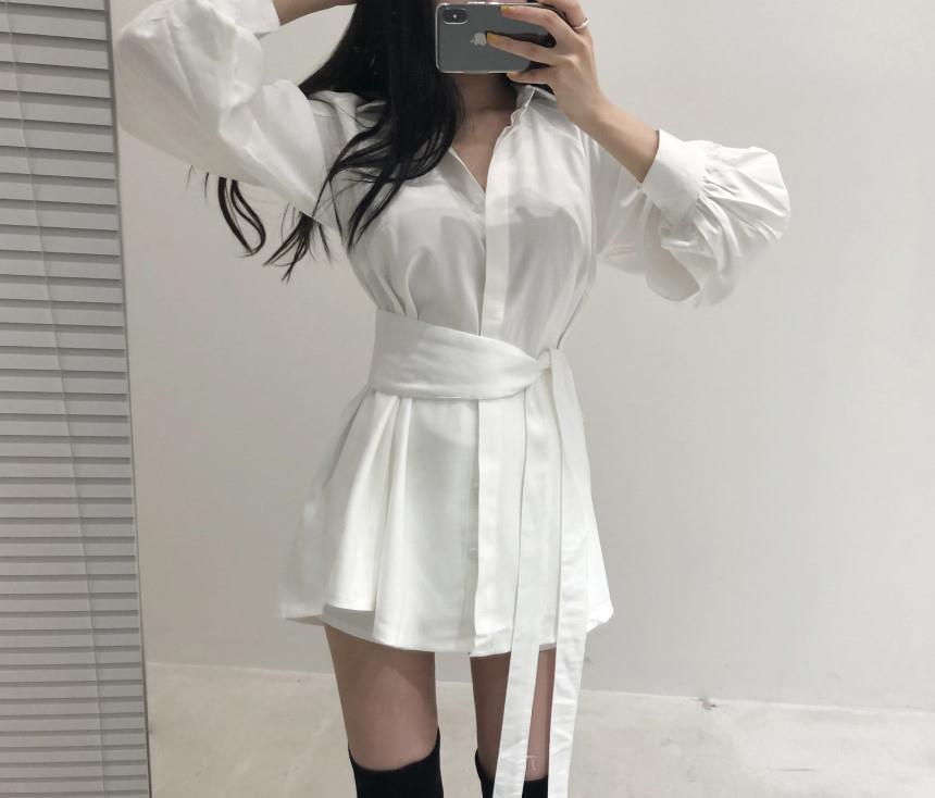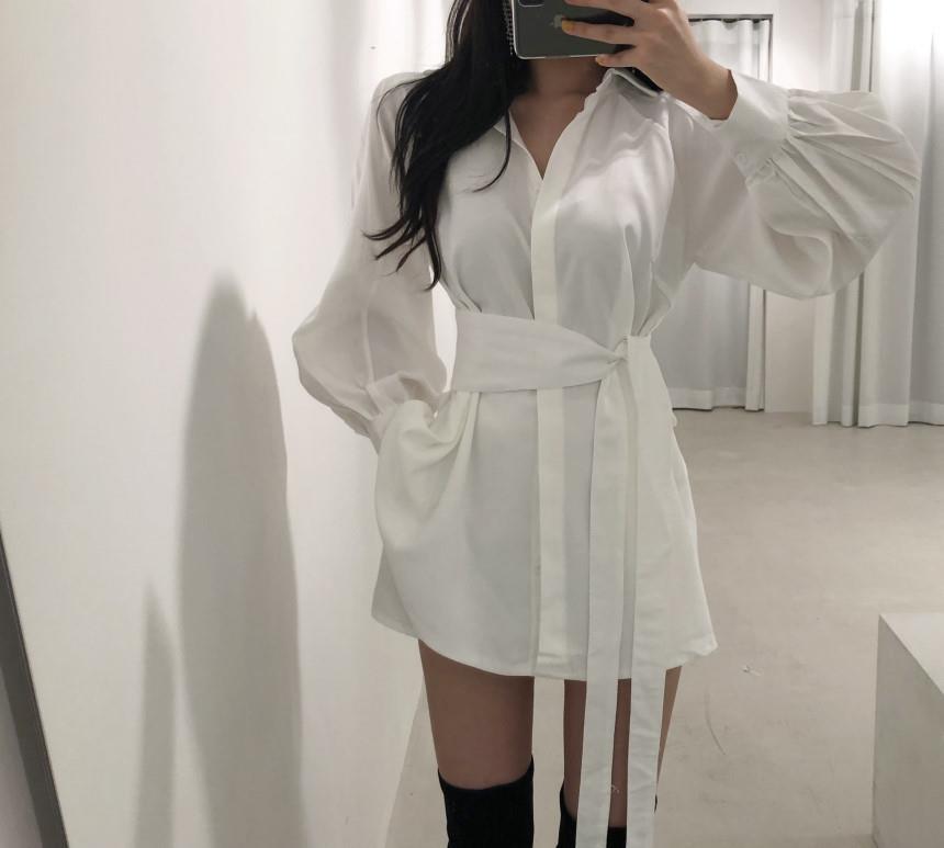 • 흰색 셔츠 원피스 + 흰색 반바지