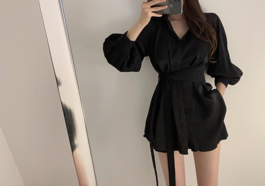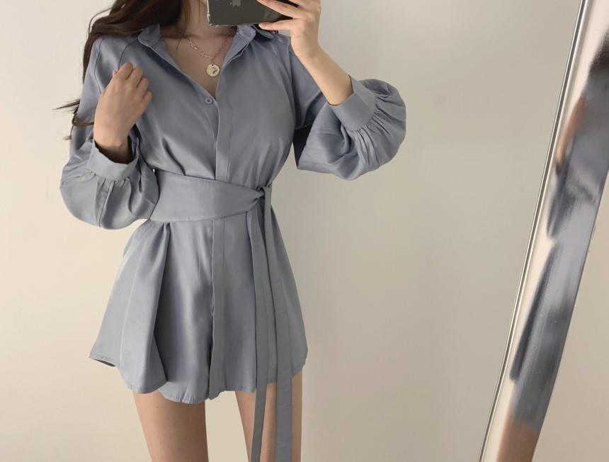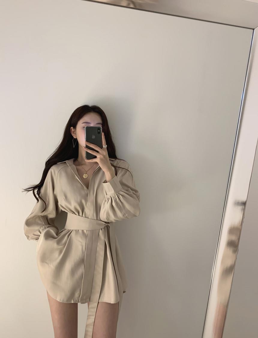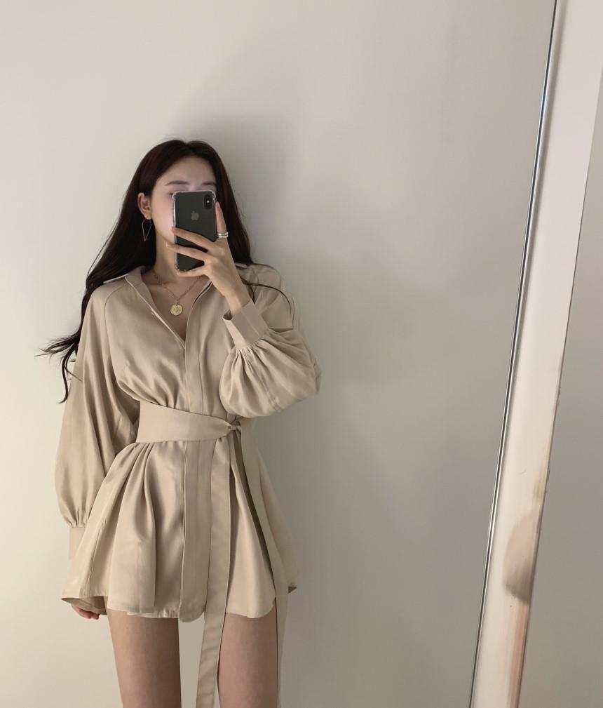 • 살구색 셔츠 원피스 + 살구색 반바지