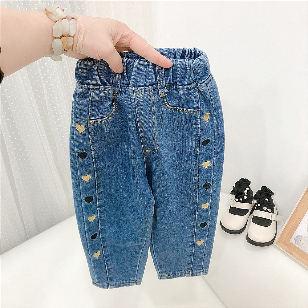 여아 사랑 청바지 2022 봄 새로운 스타일 한국 스타일 봄과 가을 바지 어린이 느슨한 캐주얼 바지스토어 가기